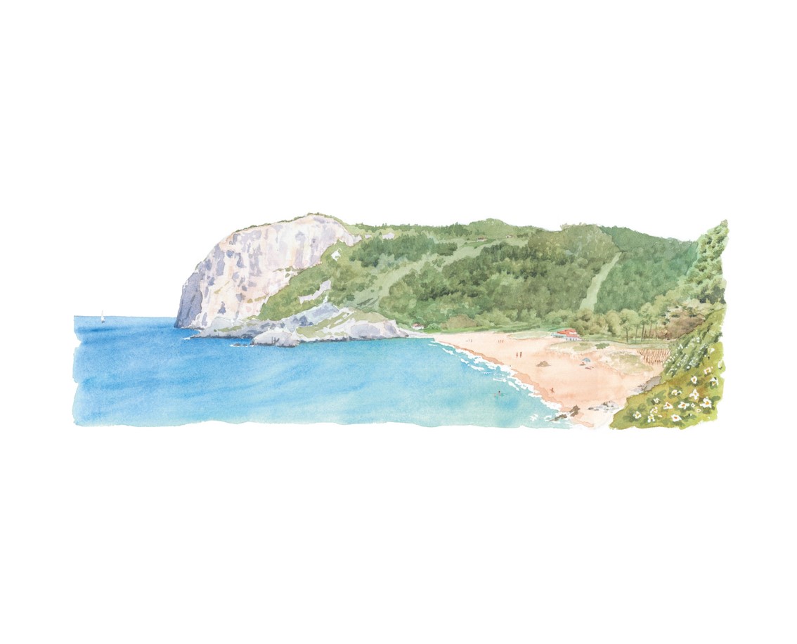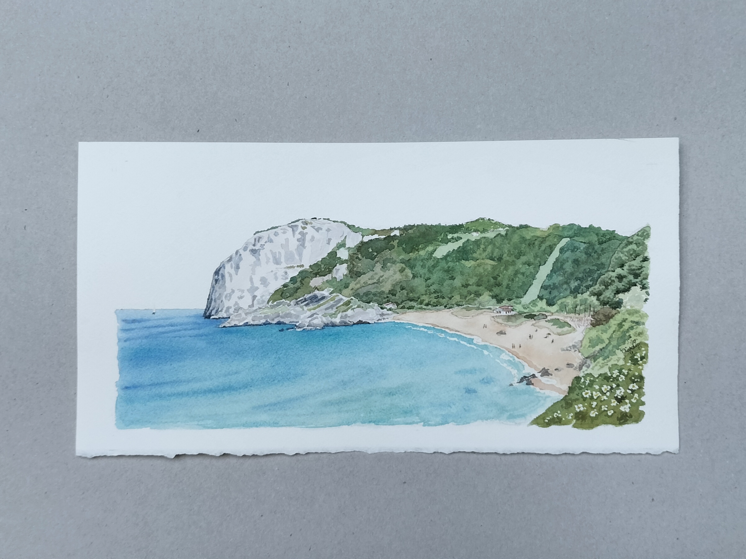 Acuarela Laga y Ogoño original de Elena Ciordia. Elena Ciordiak eginiko akuarela. Watercolor by Elena Ciordia.