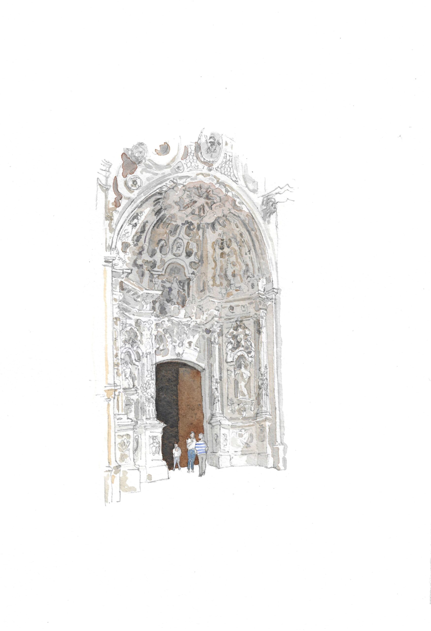 Basílica de Santa María del Coro. Acuarela sobre papel, original de Elena Ciordia.