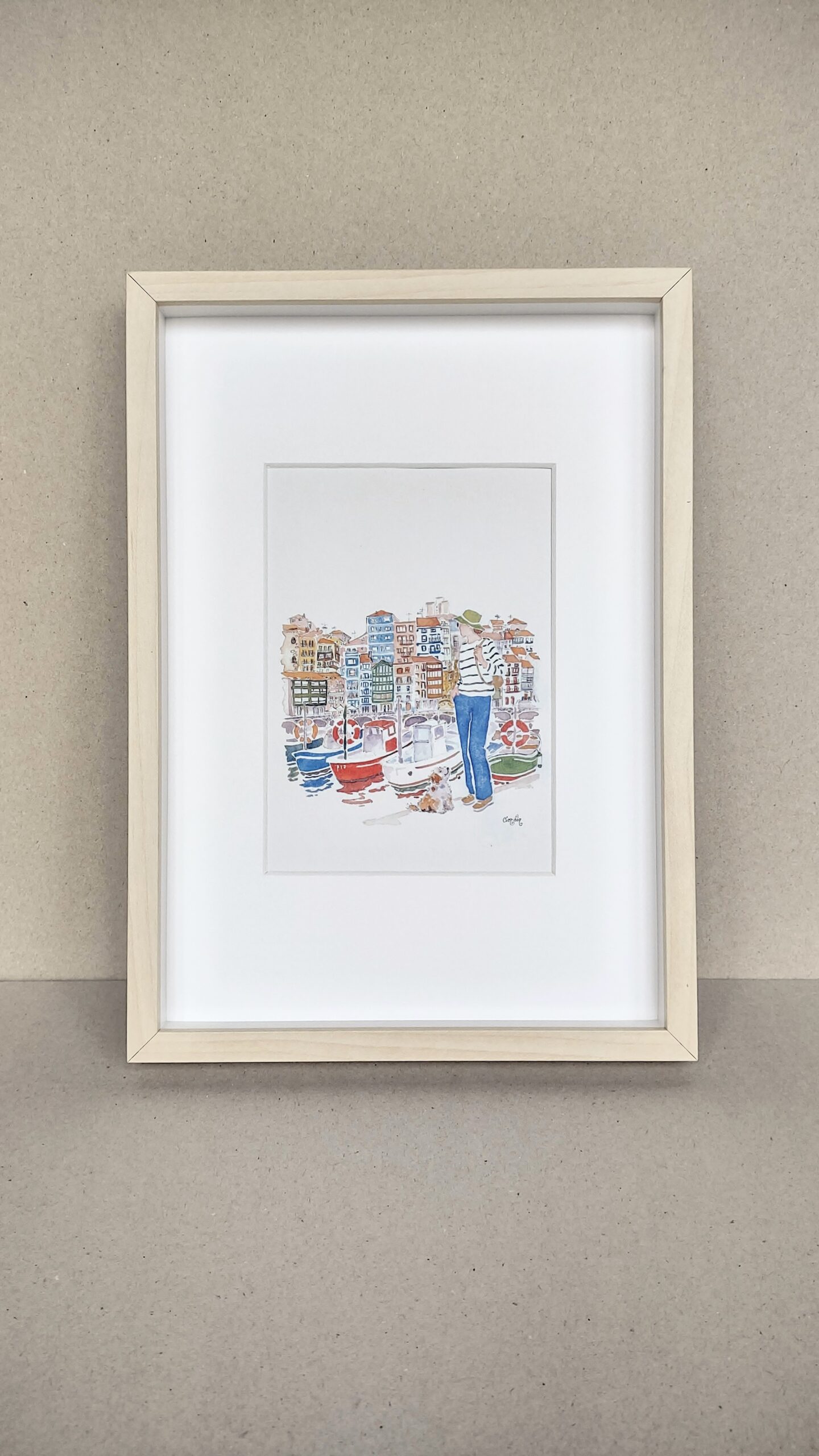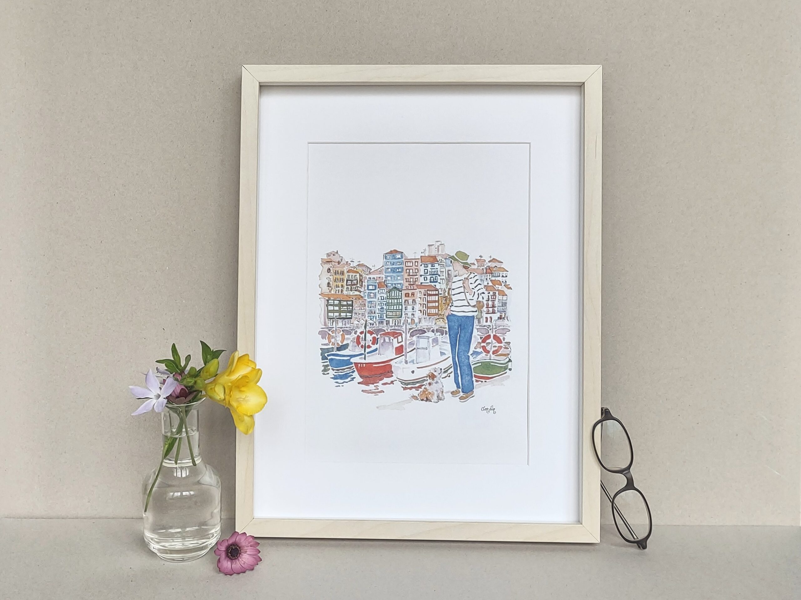 Bermeo. Nice day to enjoy walking at Bermeo. Print based on a watercolor by Elena Ciordia.