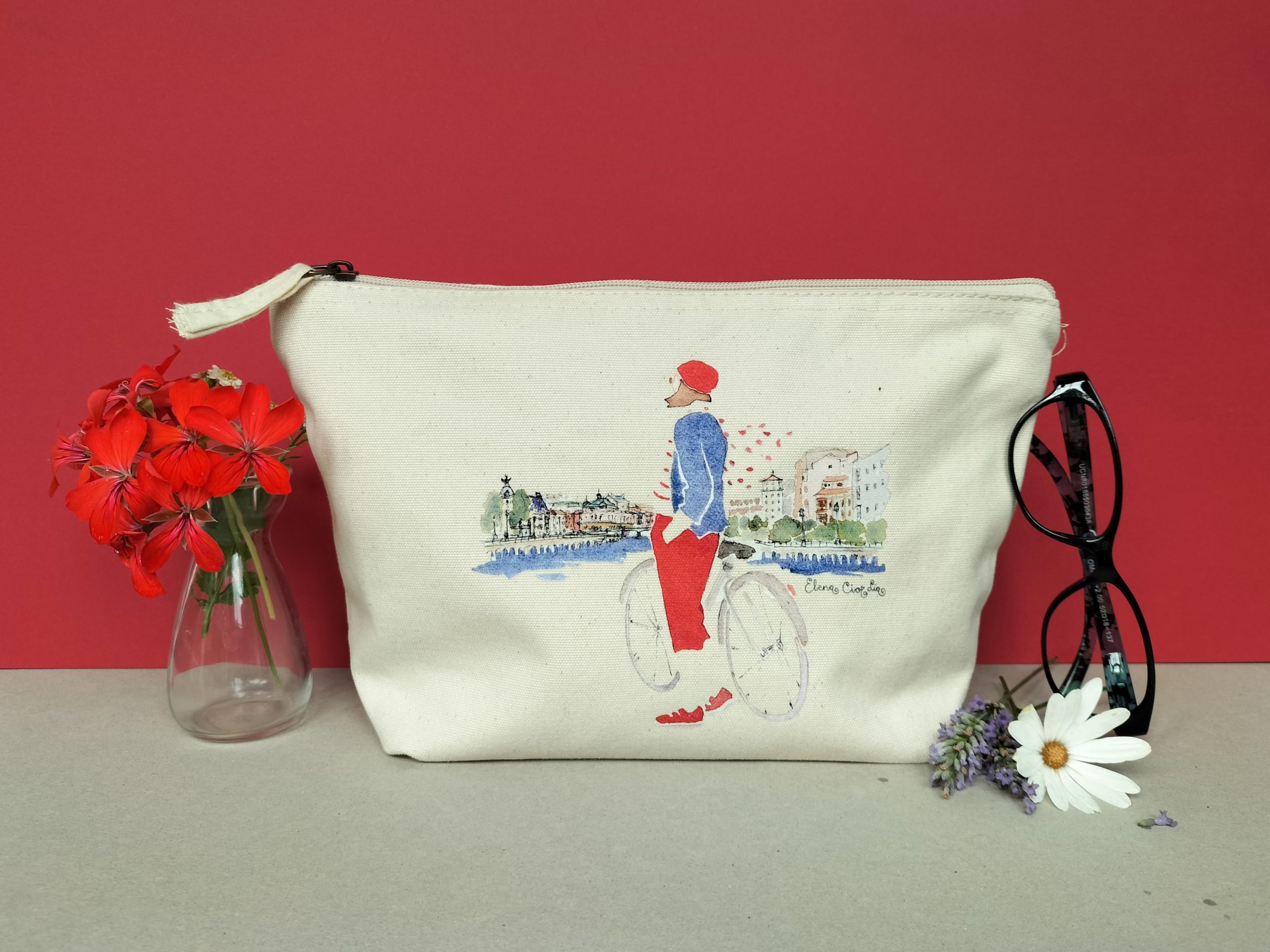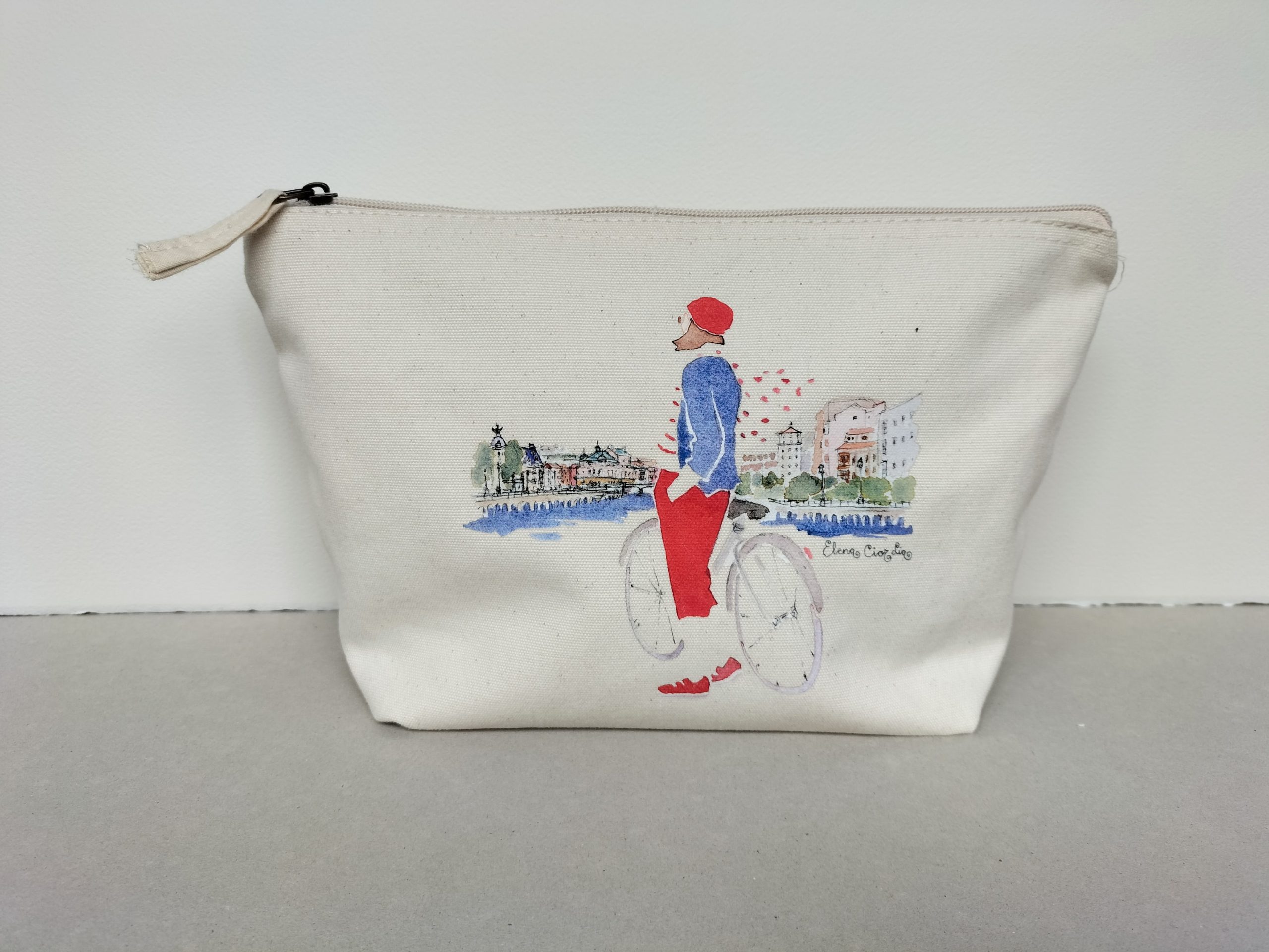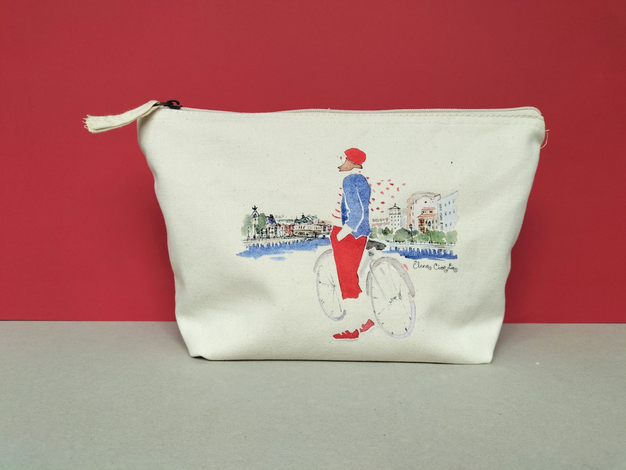 Bolso de mano ría de Bilbao, 100% algodón orgánico Westford Mill con impresión digital de una acuarela original de Elena Ciordia.