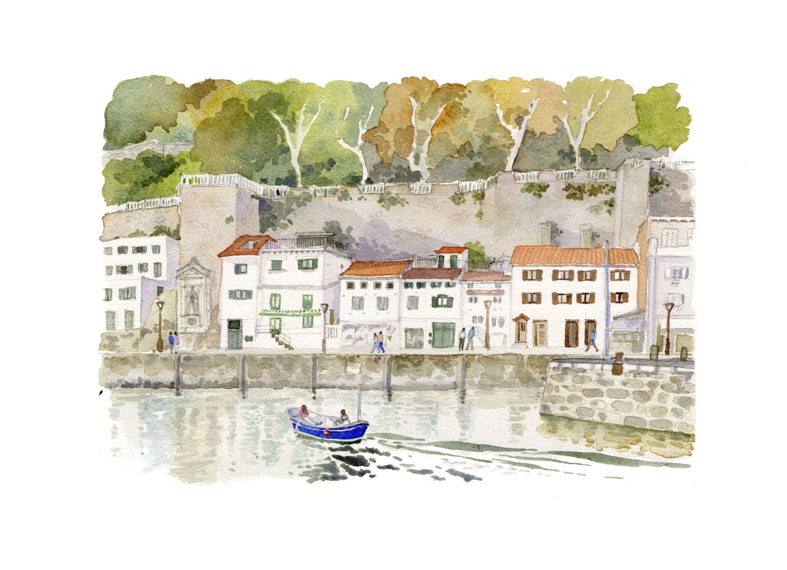 Acuarela Donostiako portua. Acuarela sobre papel, original de Elena Ciordia.