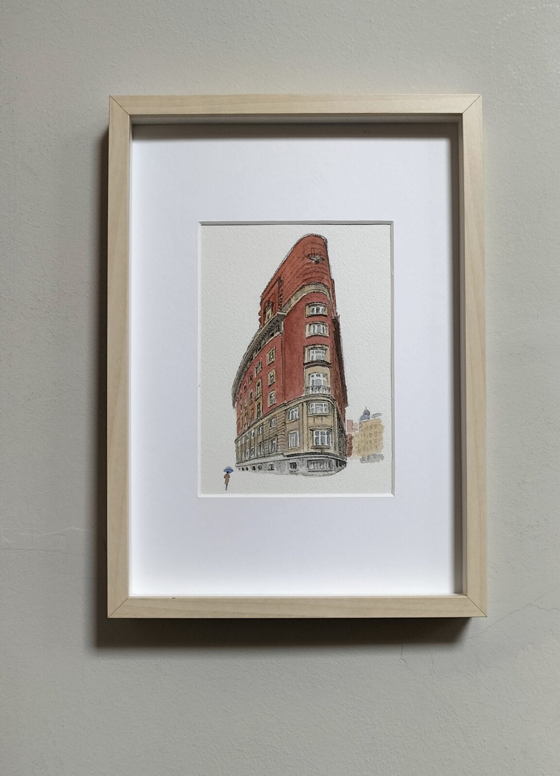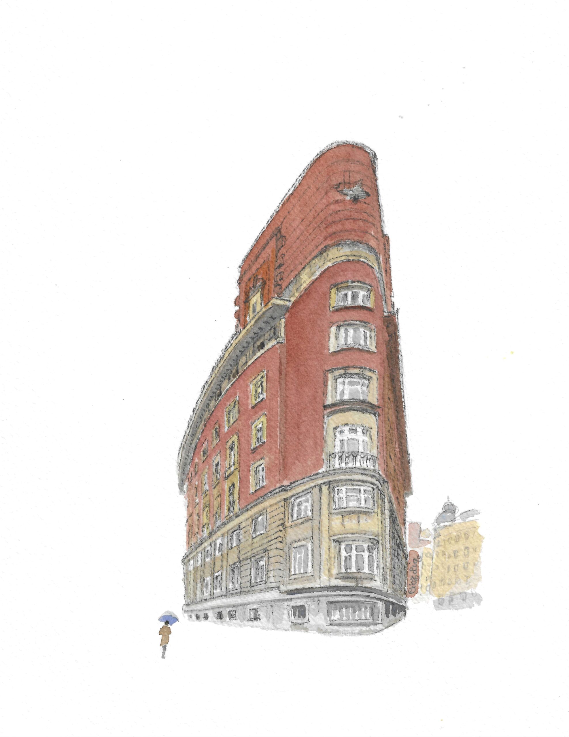 Acuarela Edificio Aznar original de Elena Ciordia. Elena Ciordiak eginiko akuarela. Watercolor by Elena Ciordia.