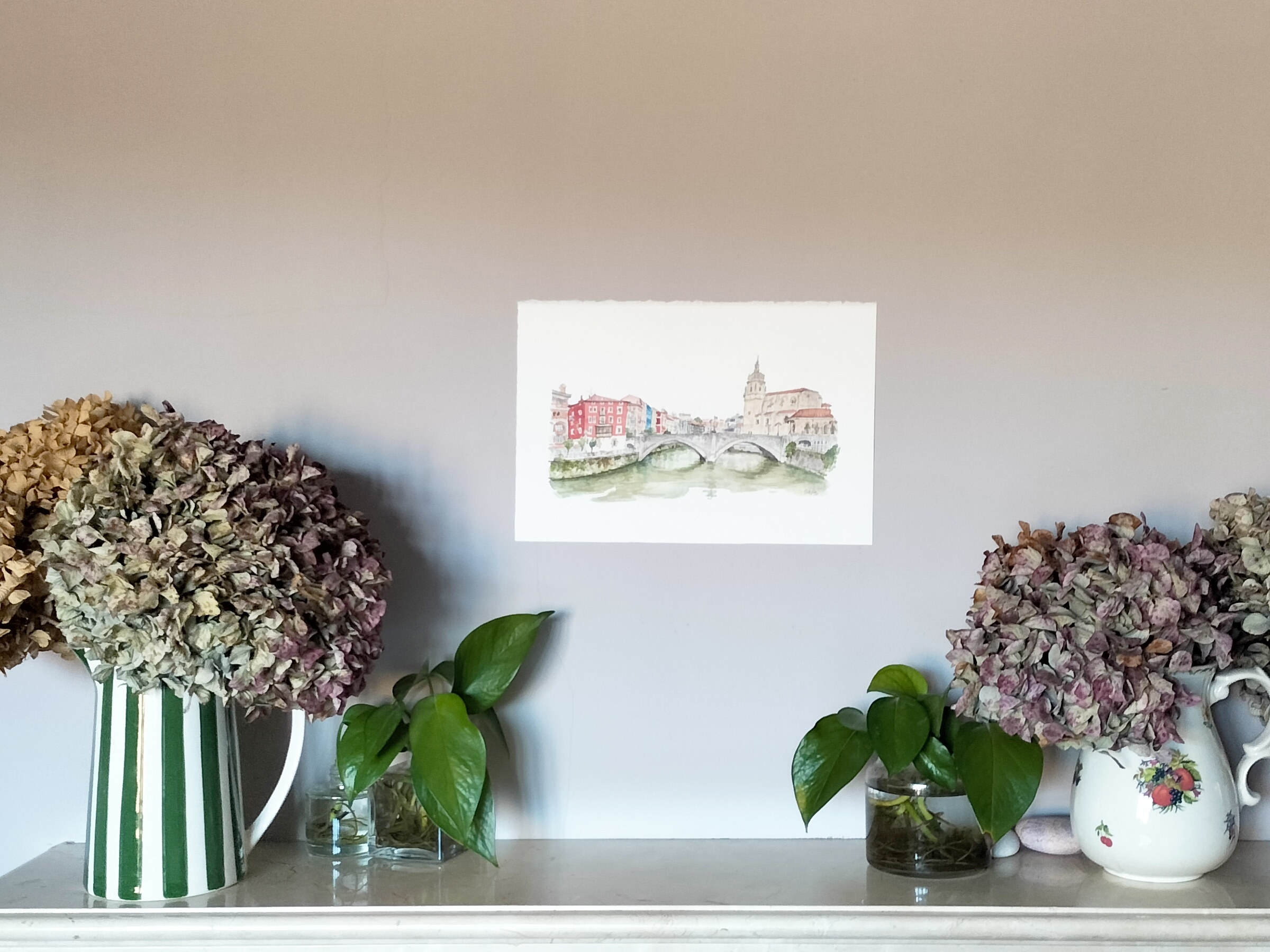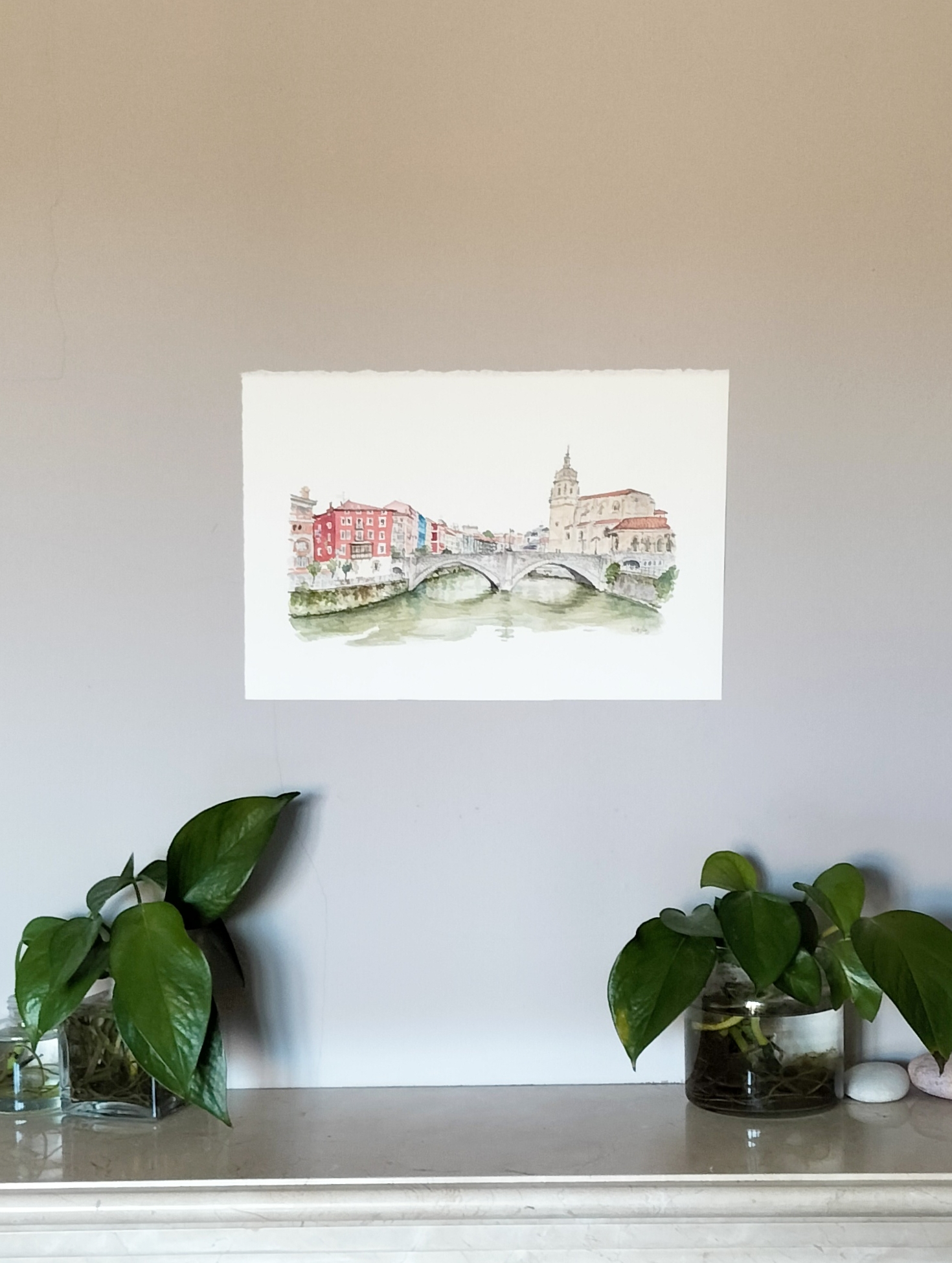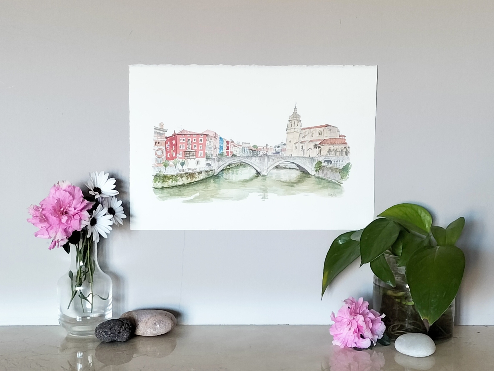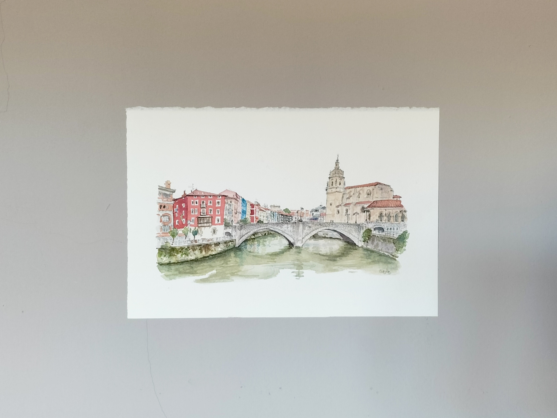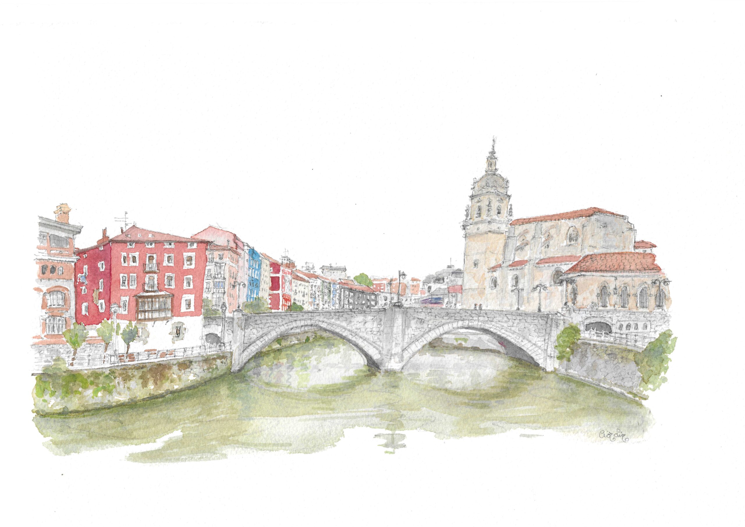 Acuarela El puente de San Antón original de Elena Ciordia. Elena Ciordiak eginiko akuarela. Watercolor by Elena Ciordia.