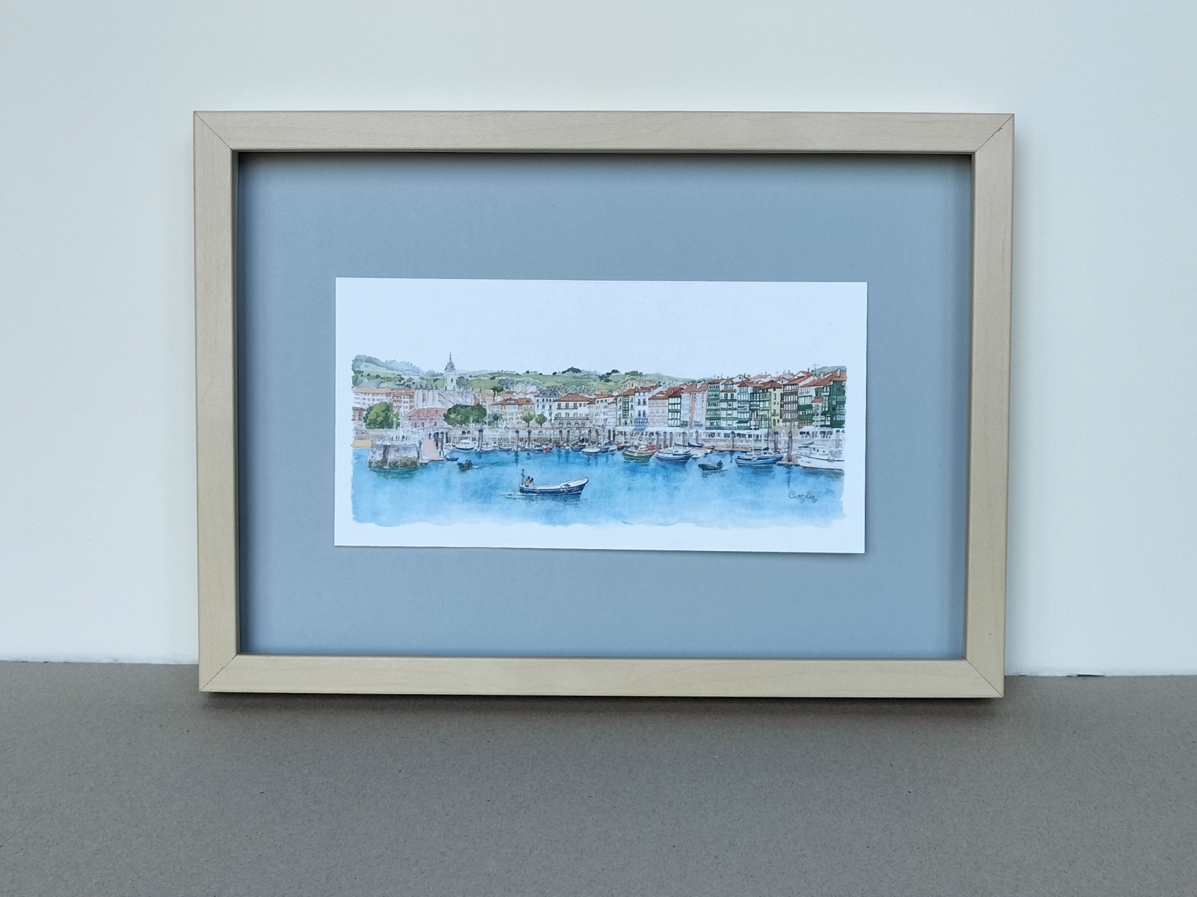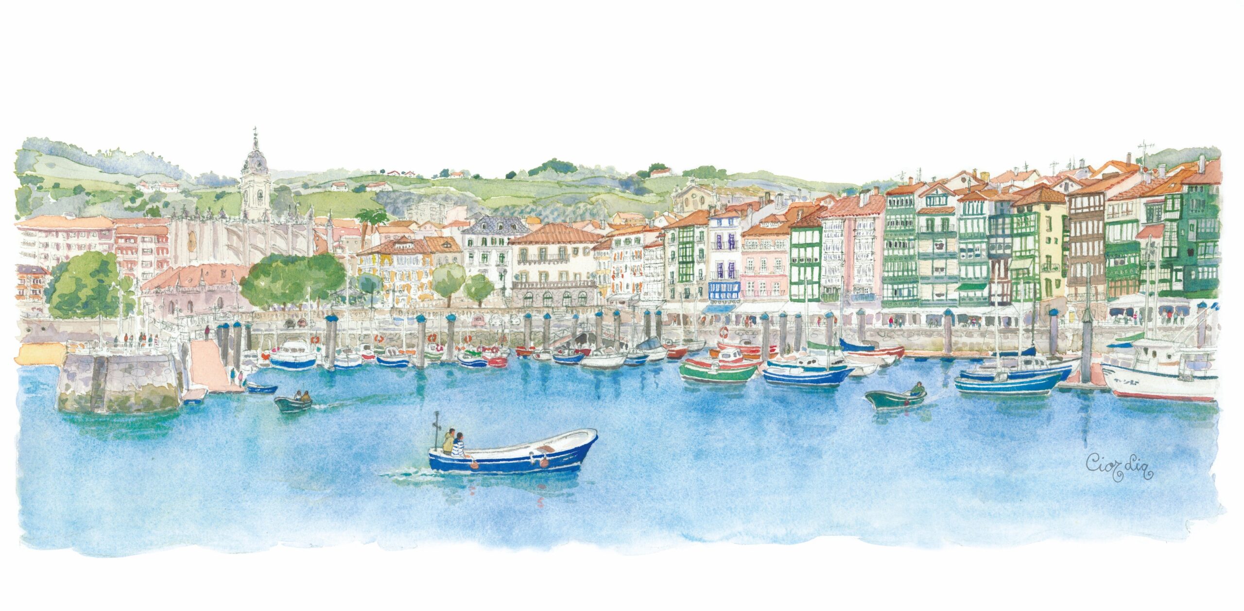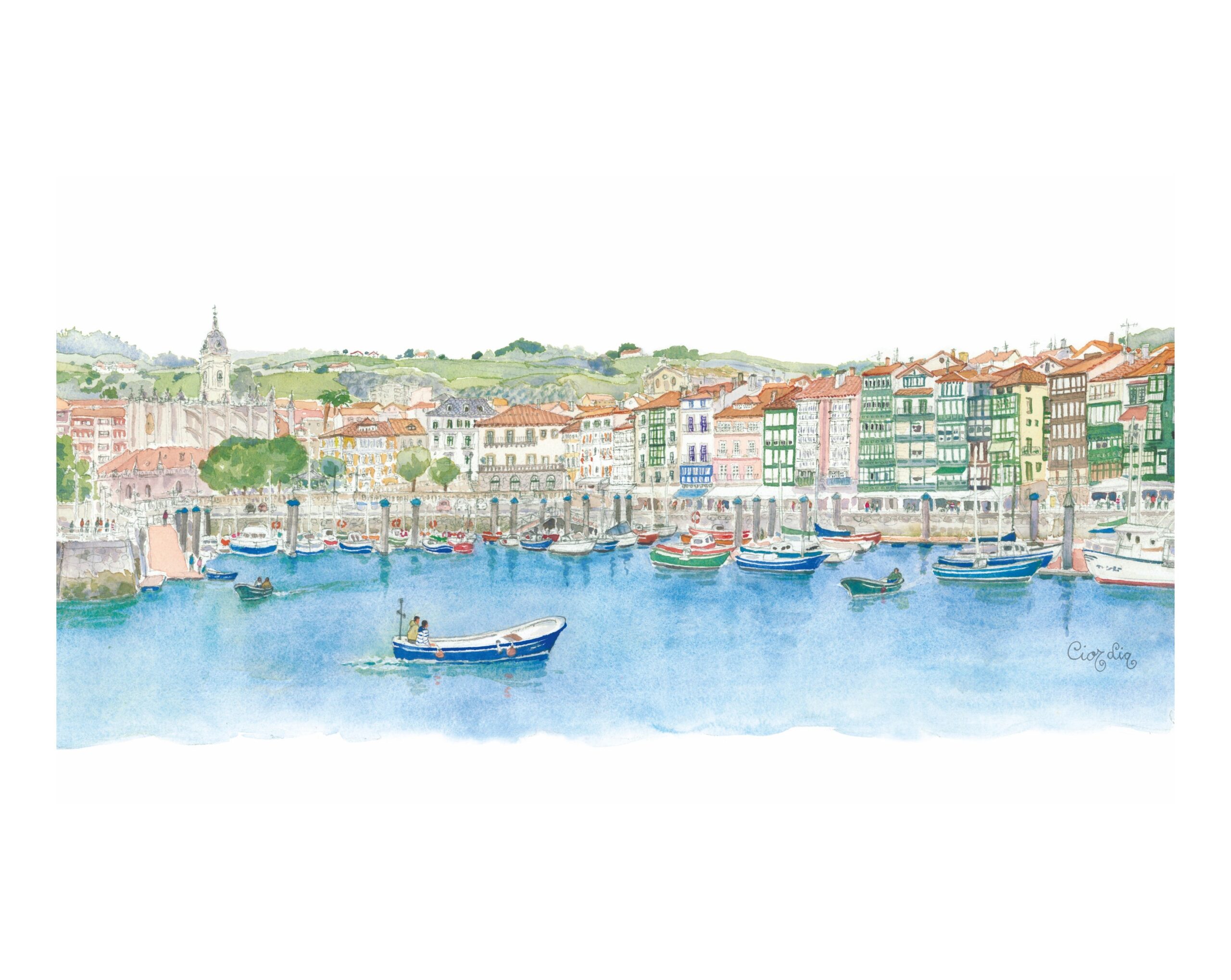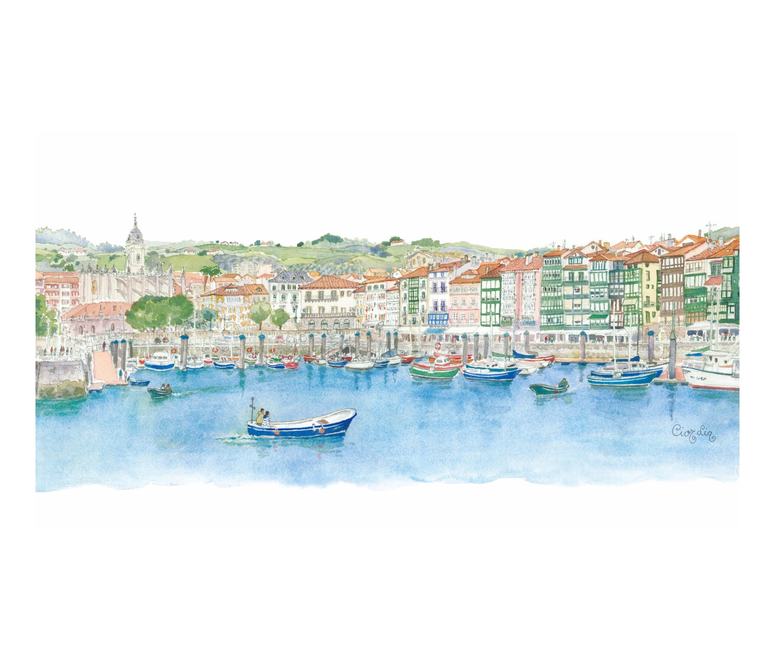 Lámina Lekeitio elaborada a partir de una acuarela de Elena Ciordia.