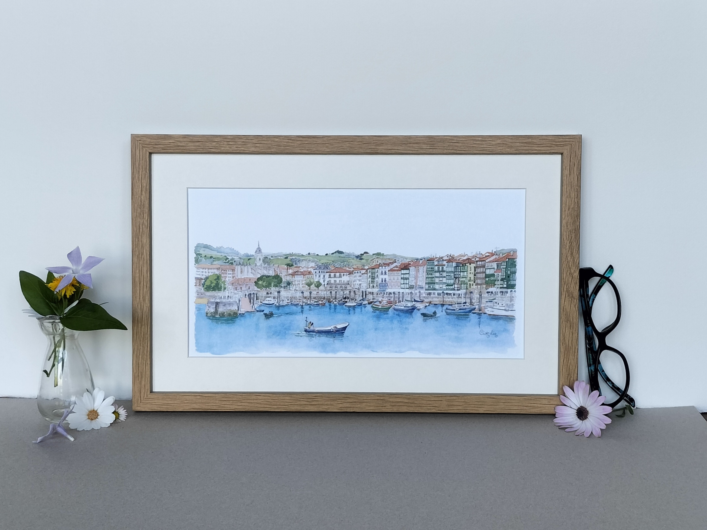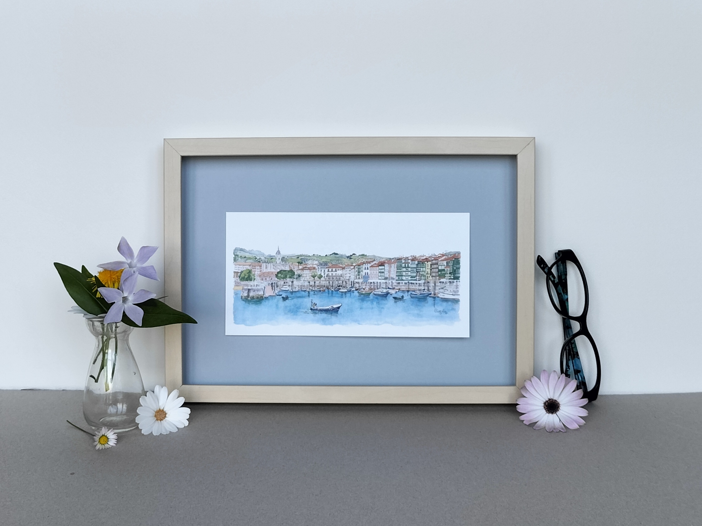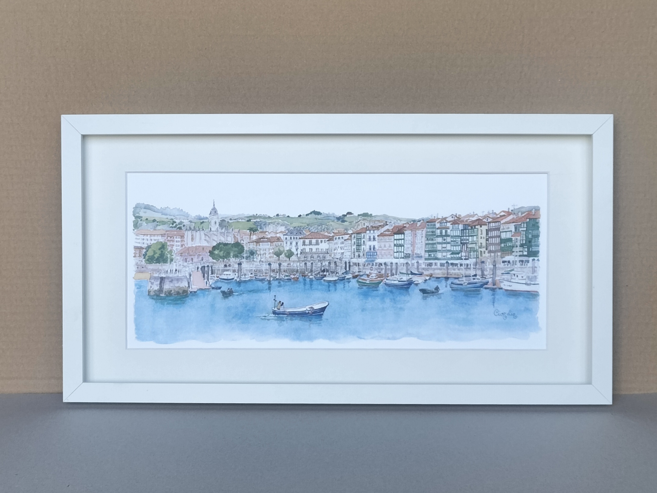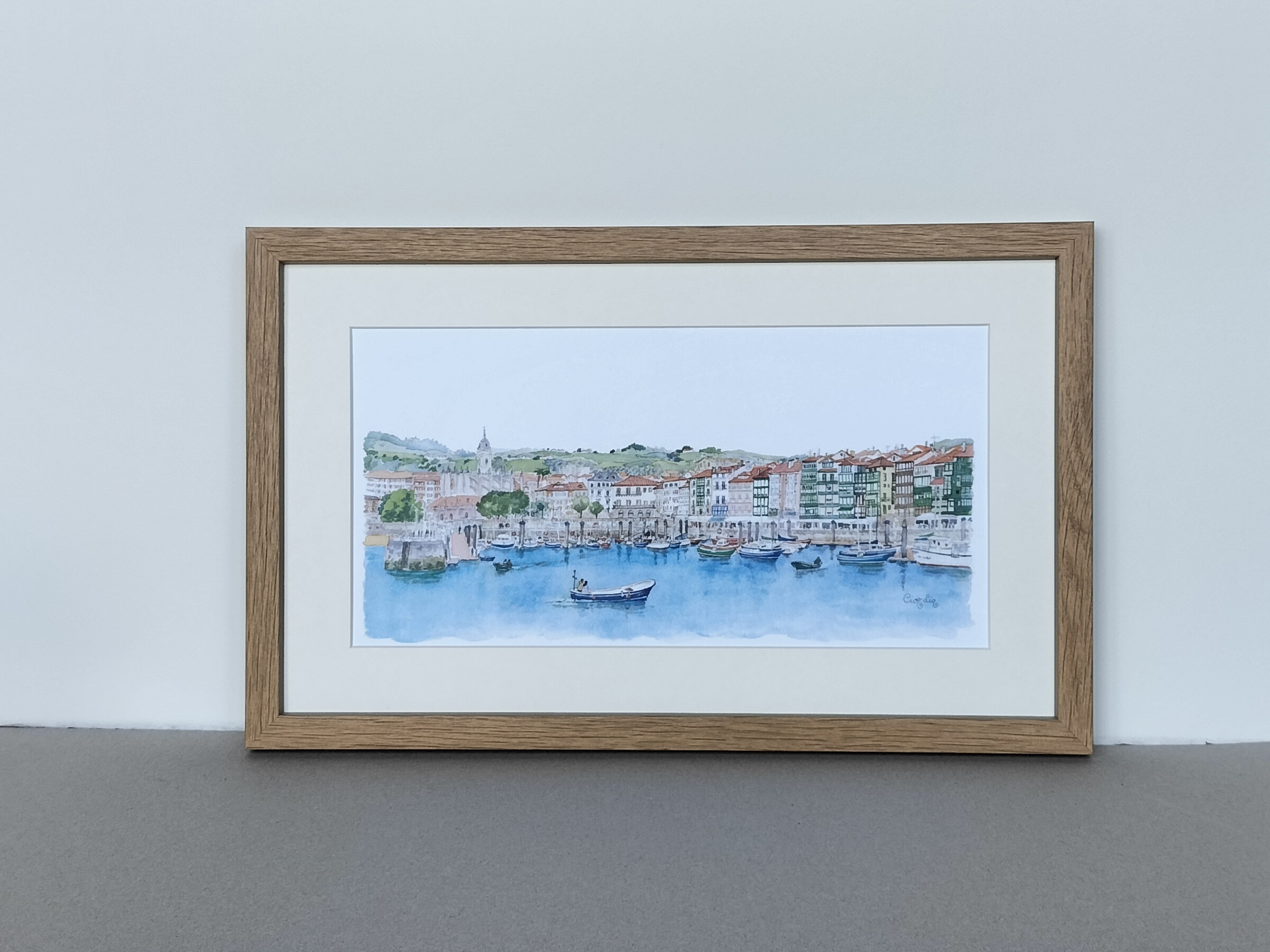 Lámina Lekeitio elaborada a partir de una acuarela de Elena Ciordia.