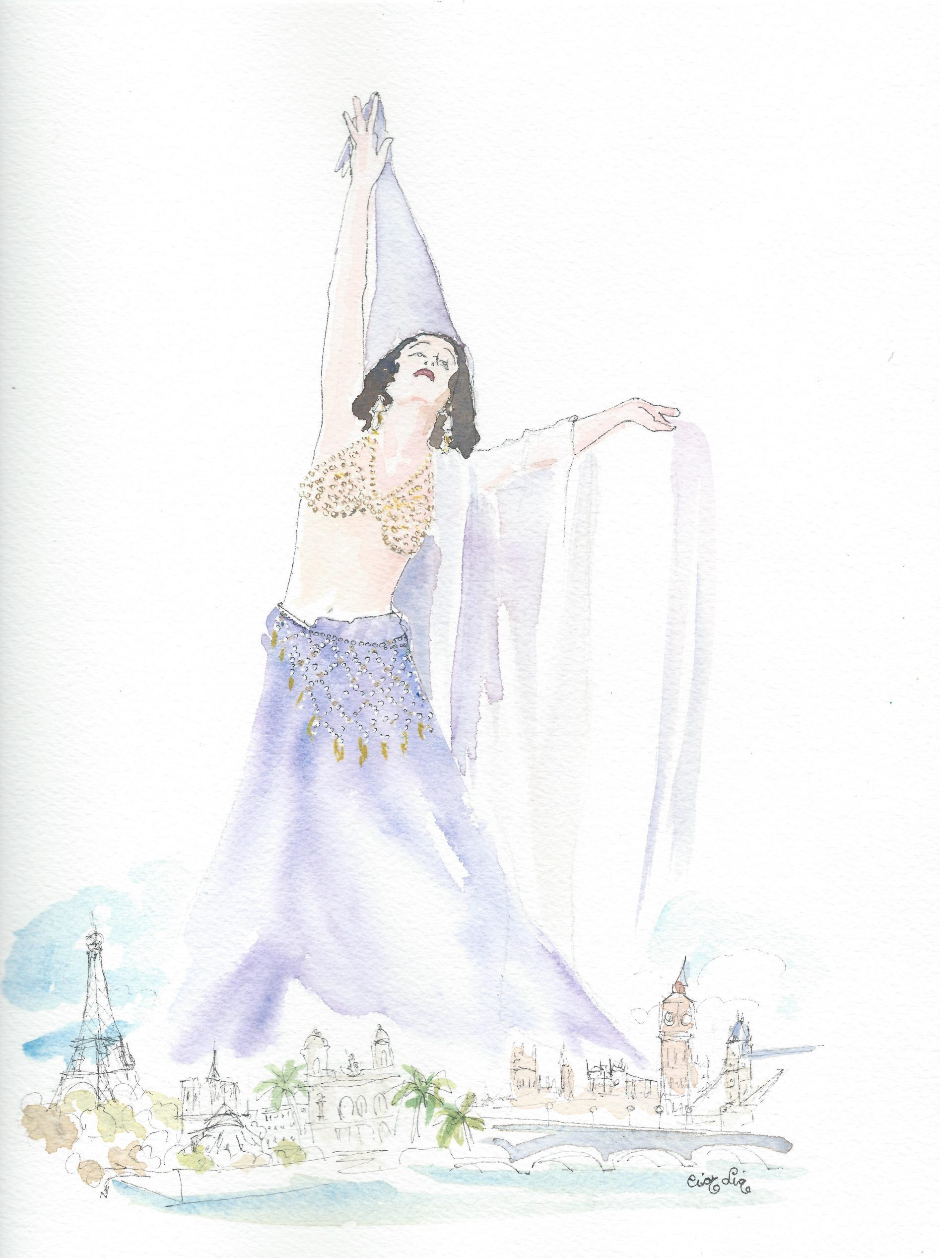 María del Villar original de Elena Ciordia. Elena Ciordiak eginiko akuarela. Watercolor by Elena Ciordia.