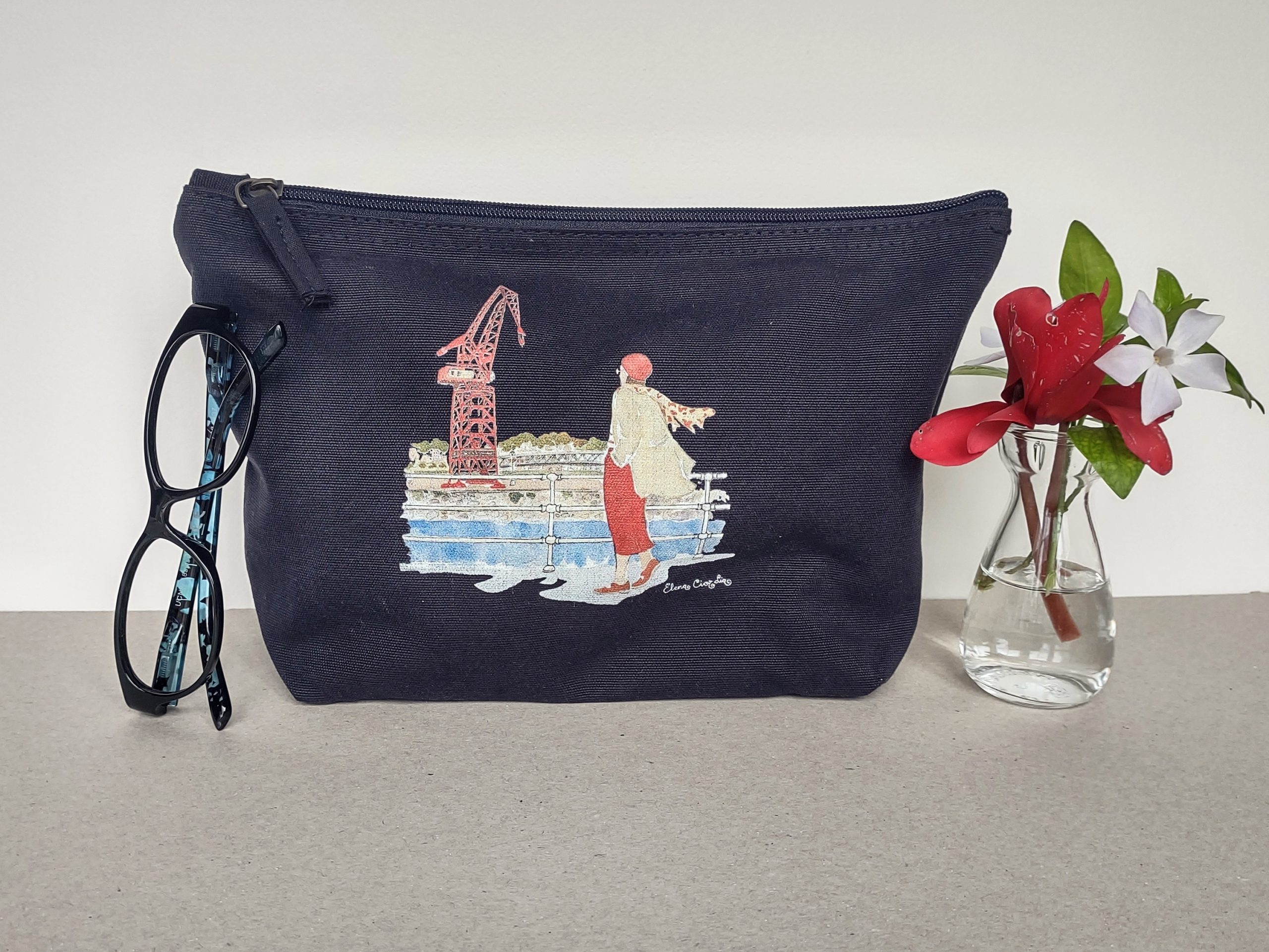 Este ligero Bolso de mano Grúa Carola Bilbao Azul te permite llevar las gafas, el móvil y las llaves de casa cuando sales a dar un paseo. La cremallera facilita que no pierdas nada. También puedes utilizarlo como neceser, bien en casa o de viaje.