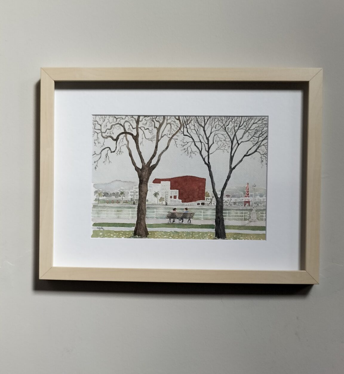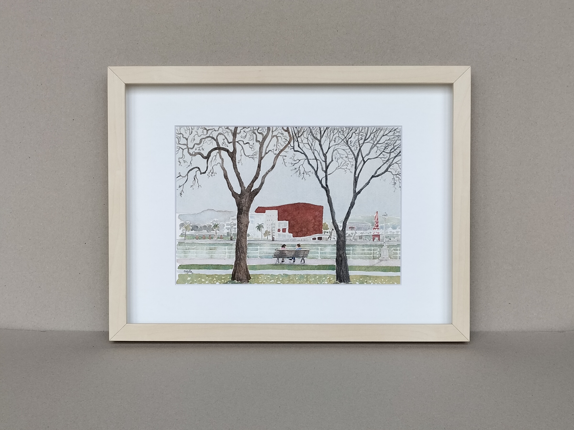 Existe la opción de comprar la Acuarela Palacio Euskalduna Jauregia desde la ría enmarcada.