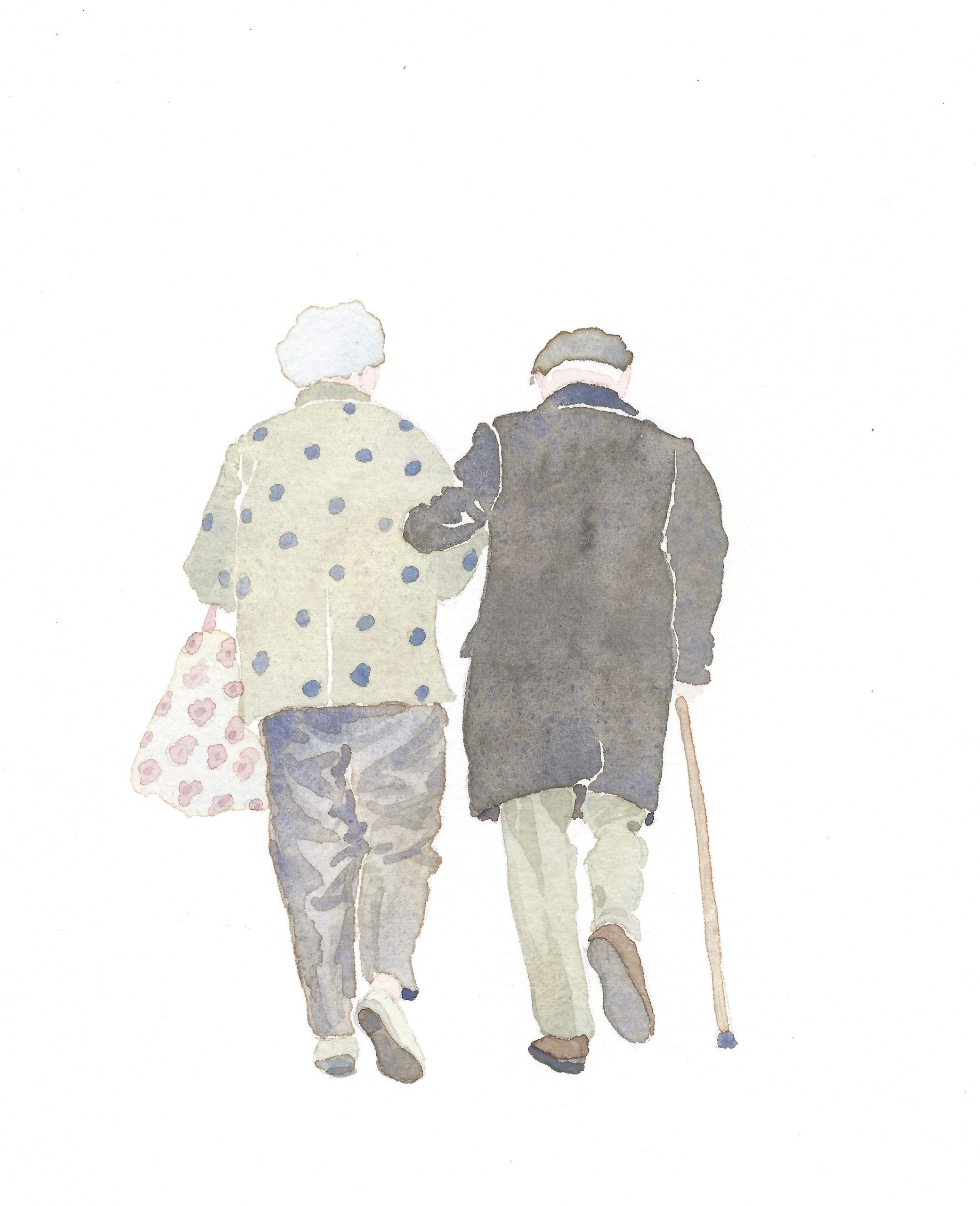Acuarela original de Elena Ciordia. Paseo / Paseatzen