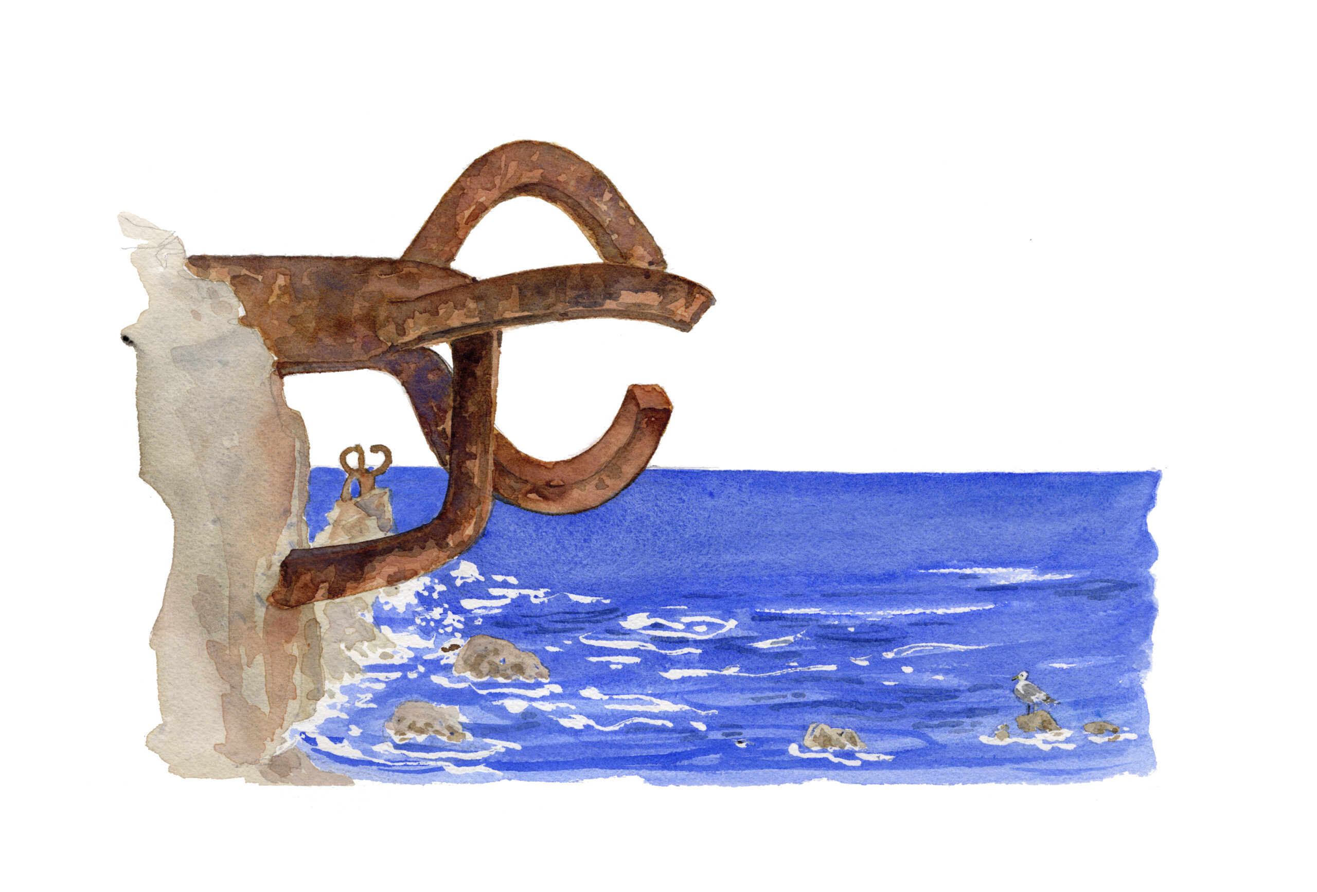 Peine del Viento Haizearen Orrazia I. Acuarela sobre papel, original de Elena Ciordia.