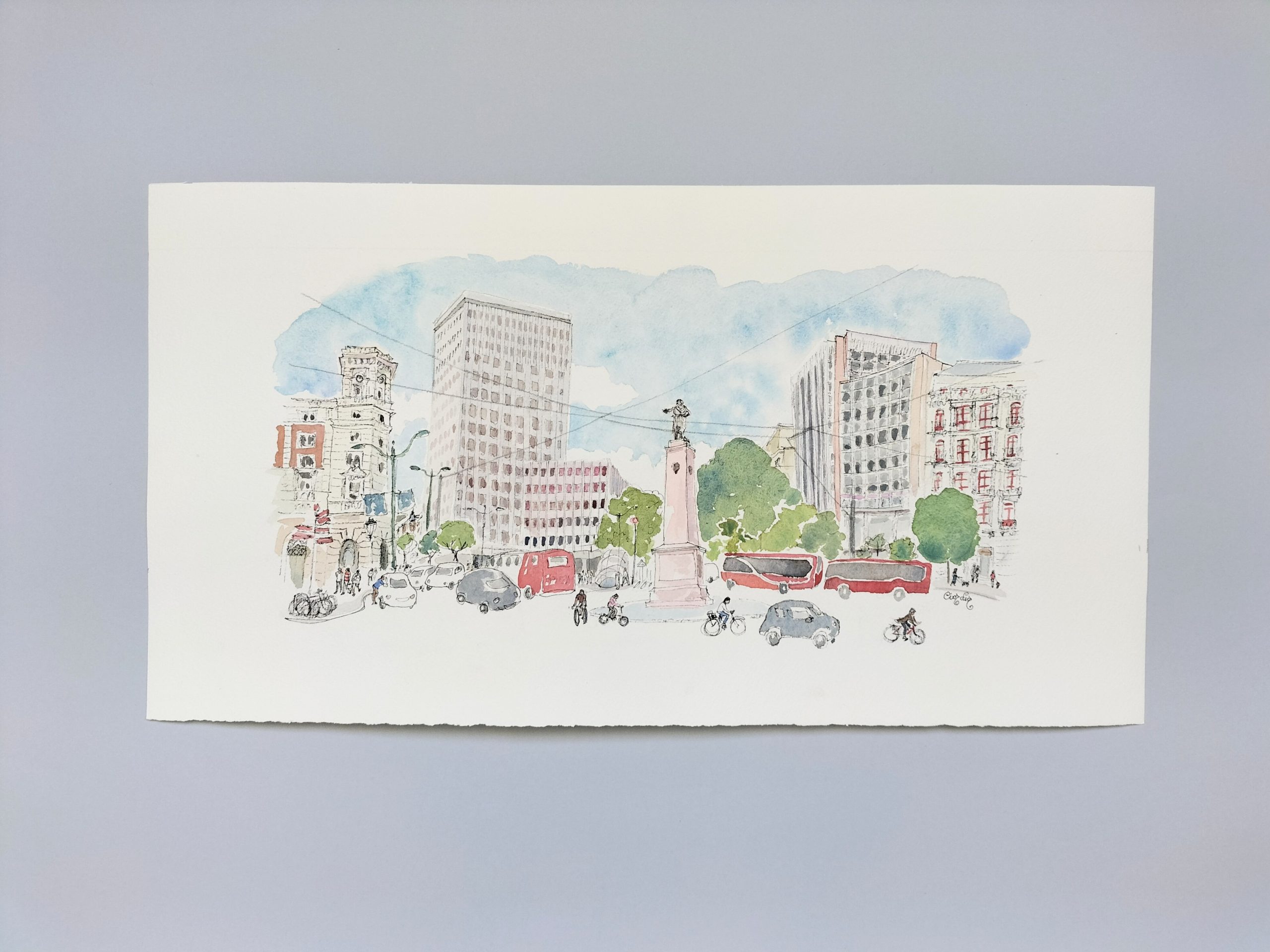 Acuarela Jardines de Albia. Elena Ciordiak eginiko akuarela. Watercolor by Elena Ciordia.
