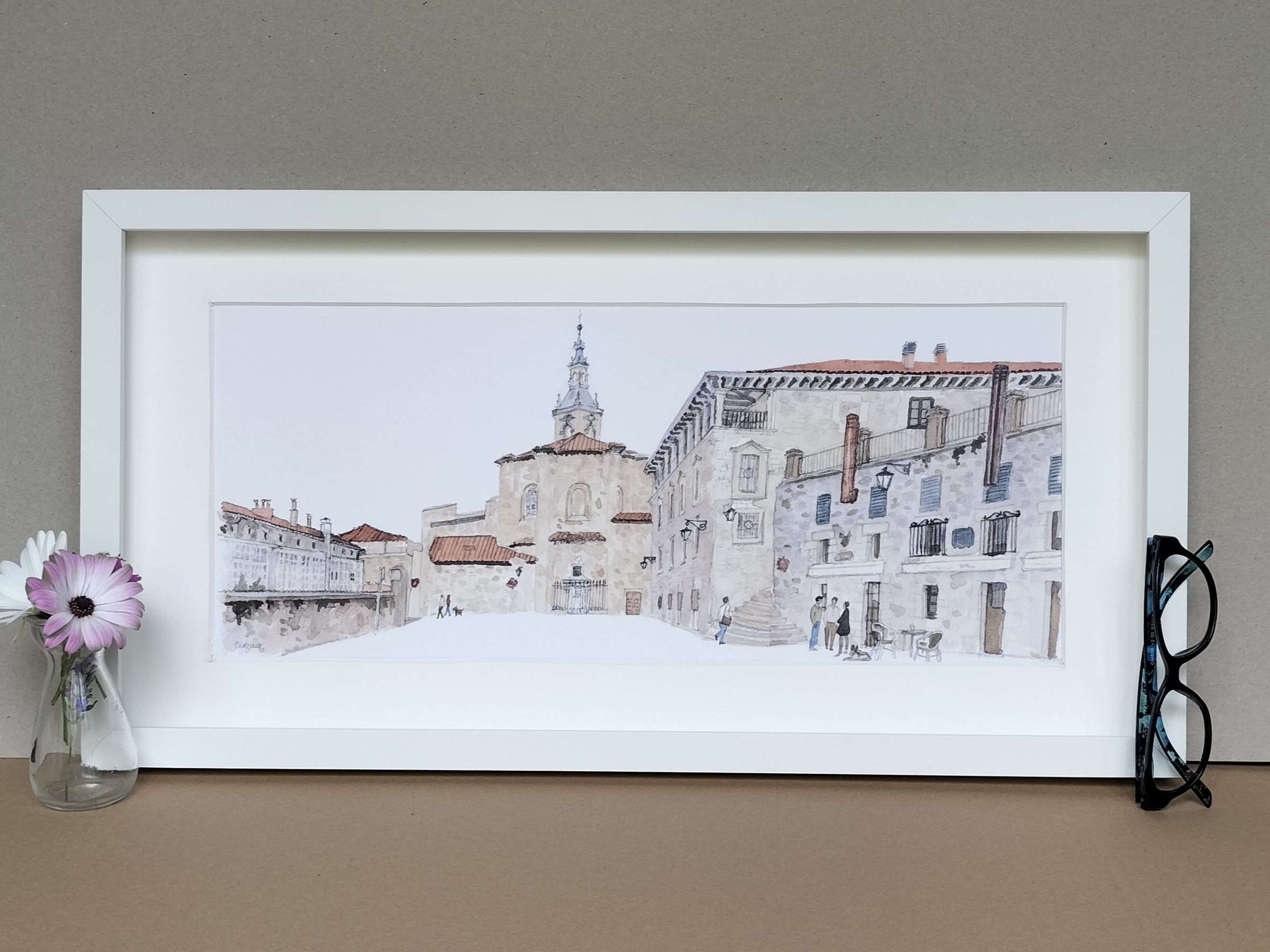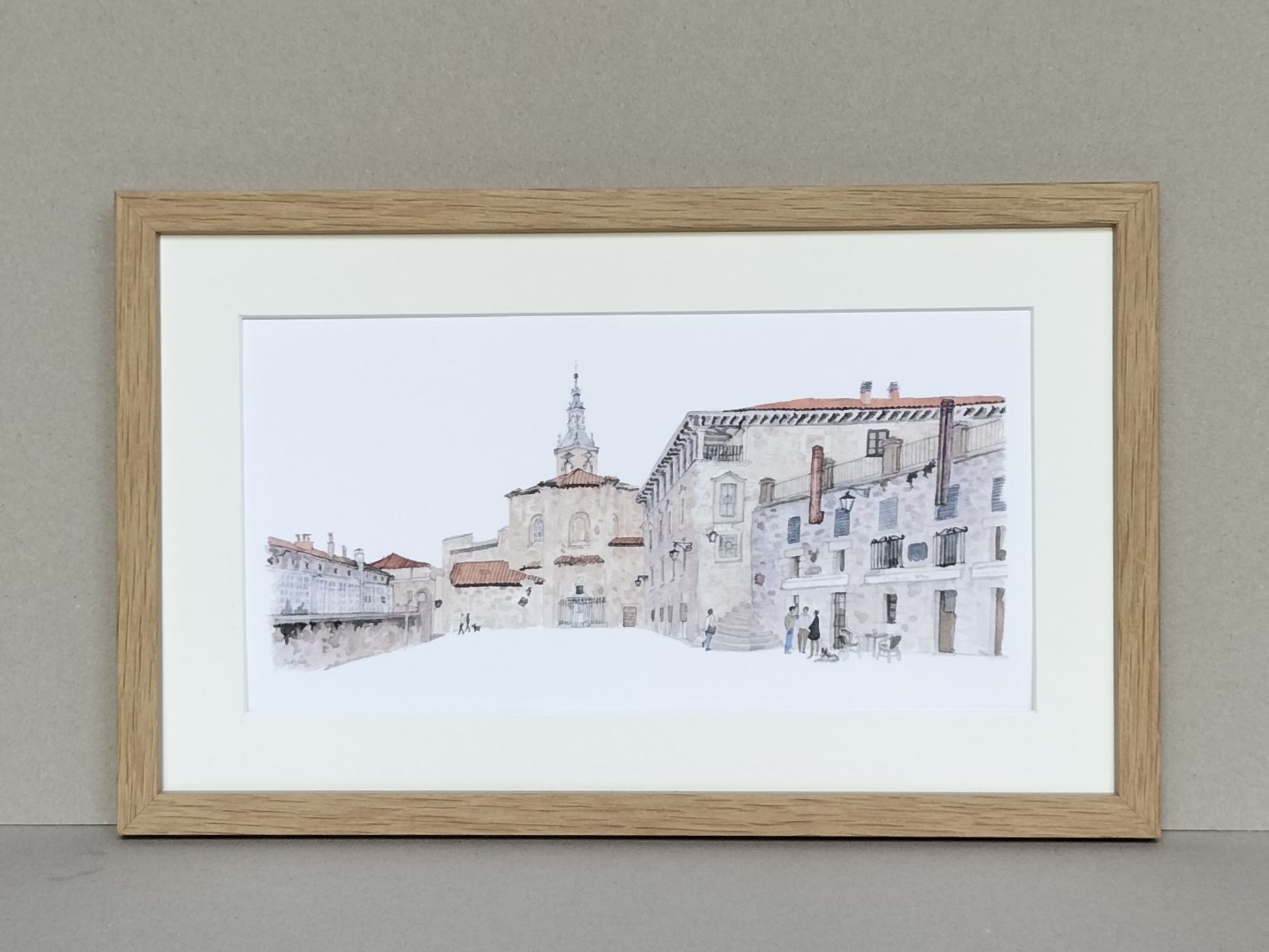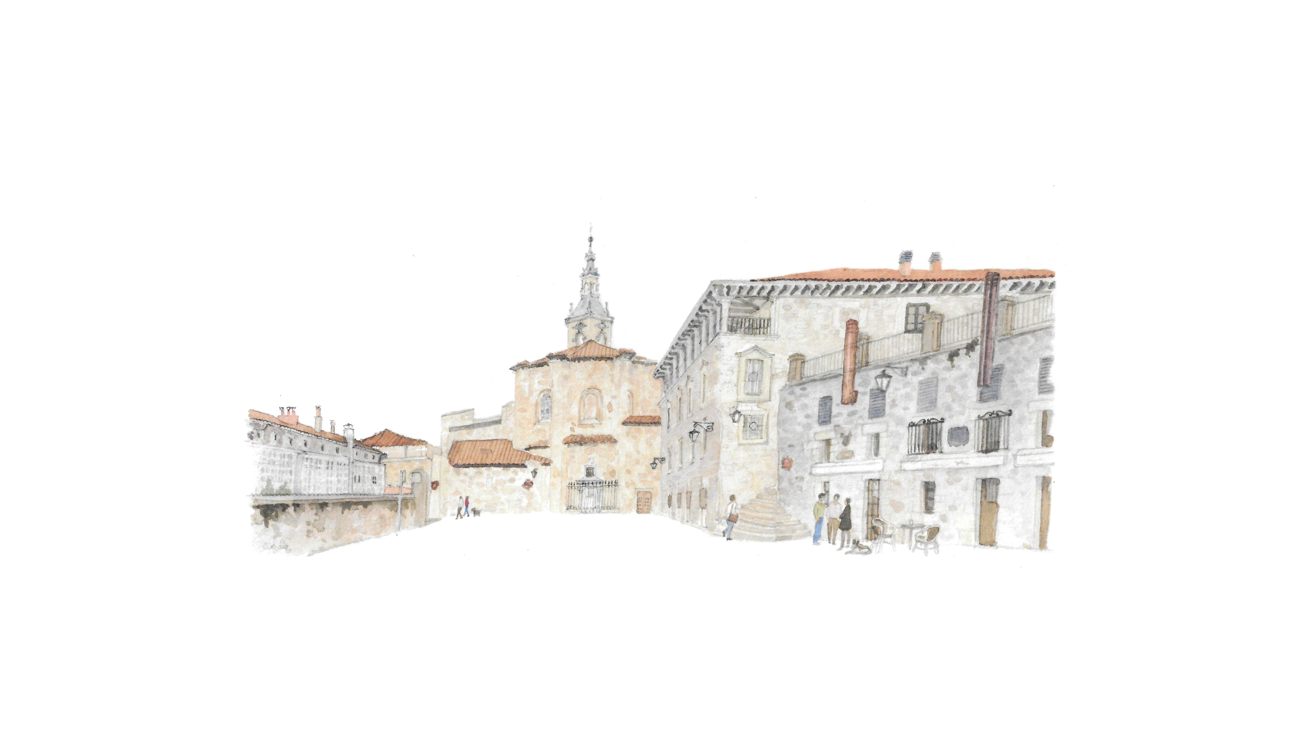 Lámina Plaza del Machete Aihotz plaza Vitoria Gasteiz elaborada a partir de una acuarela de Elena Ciordia.