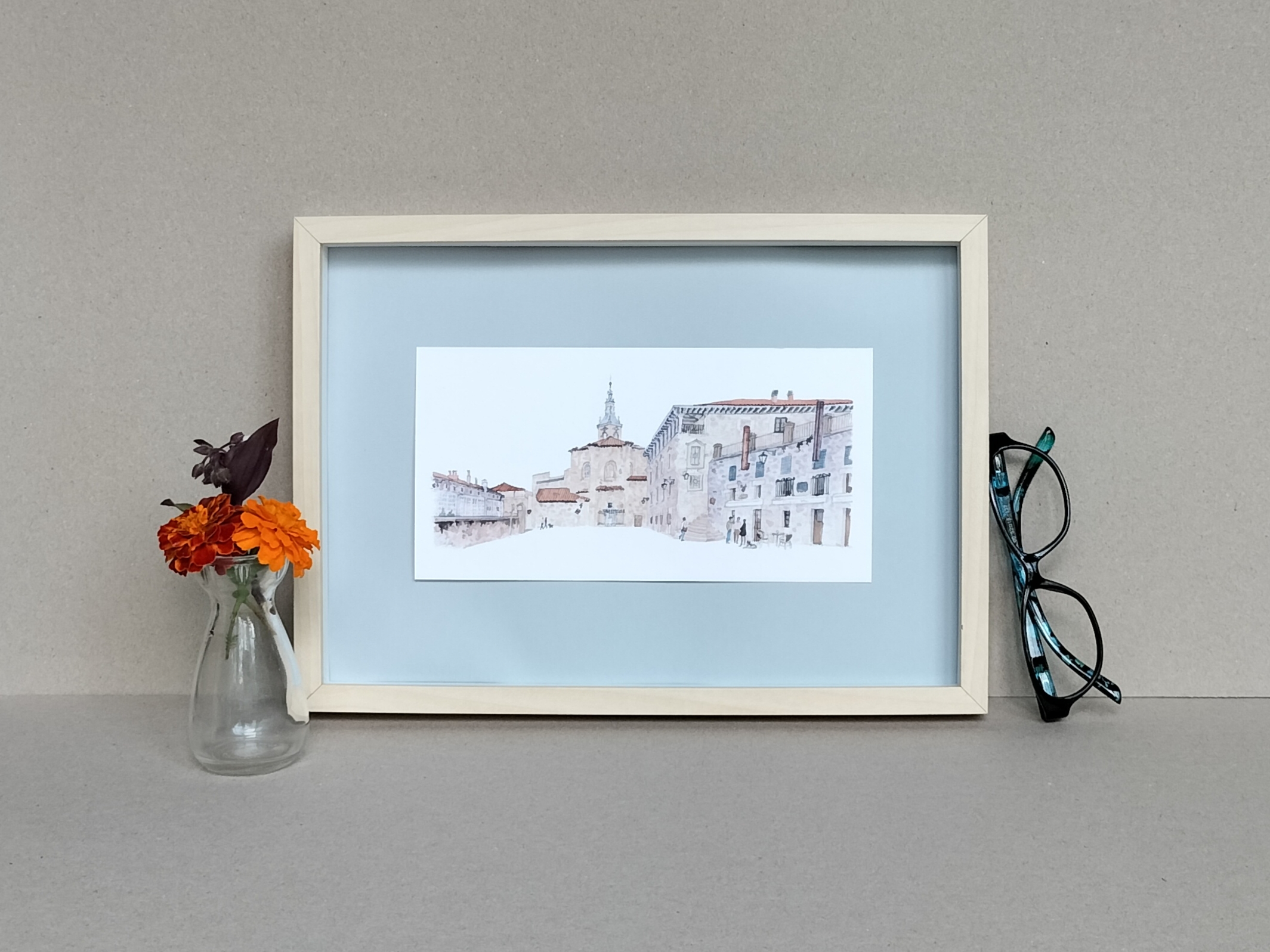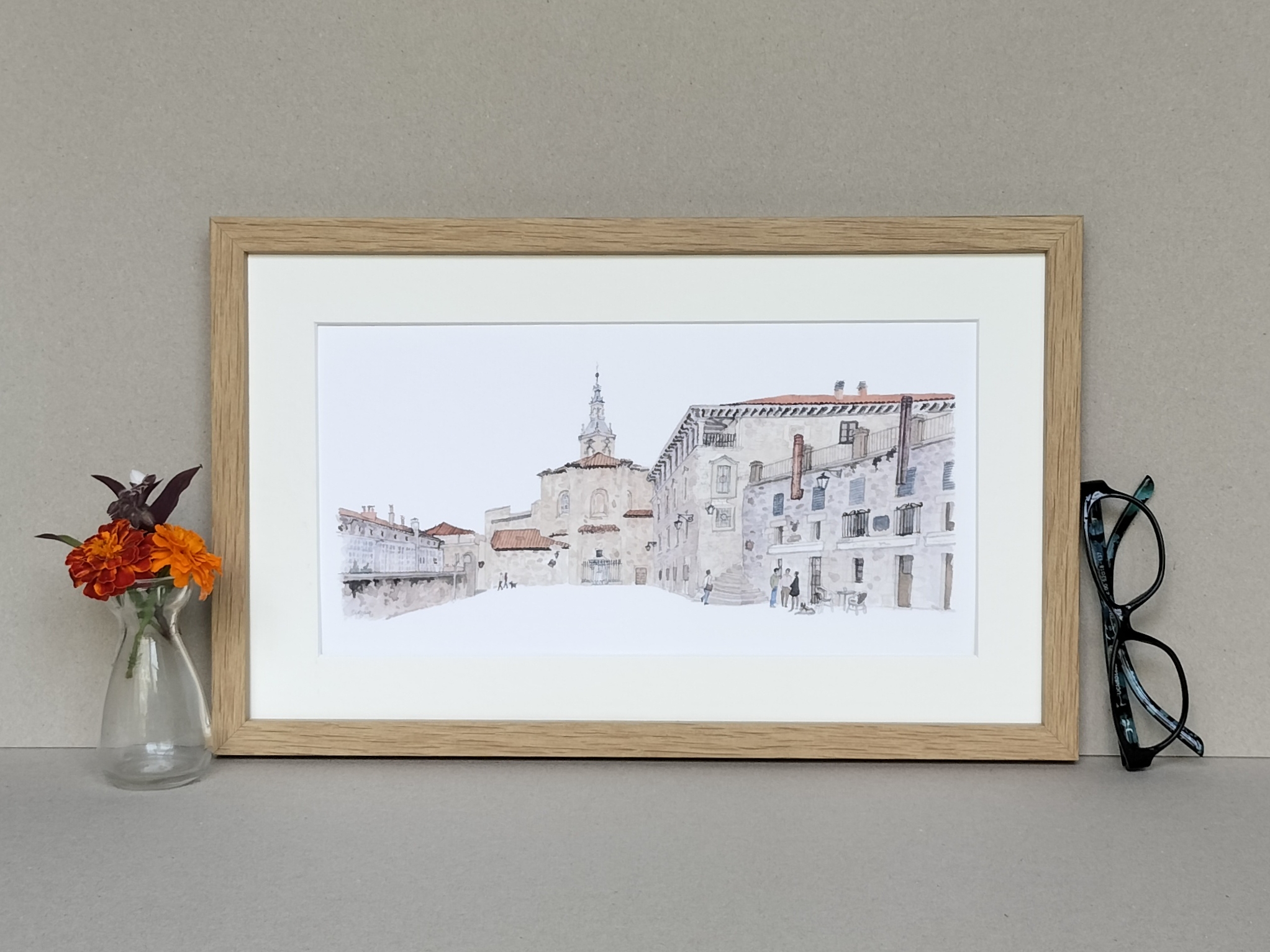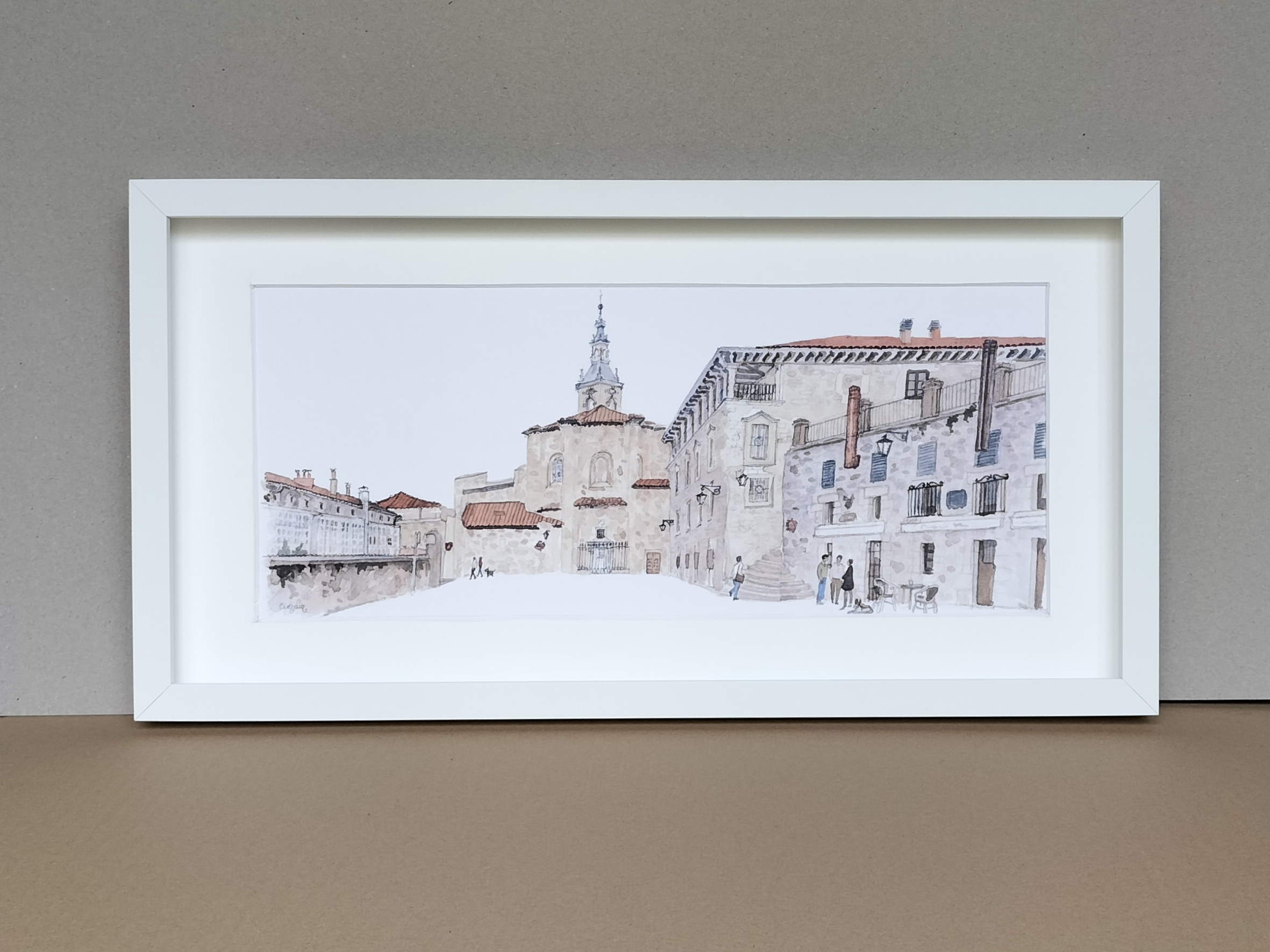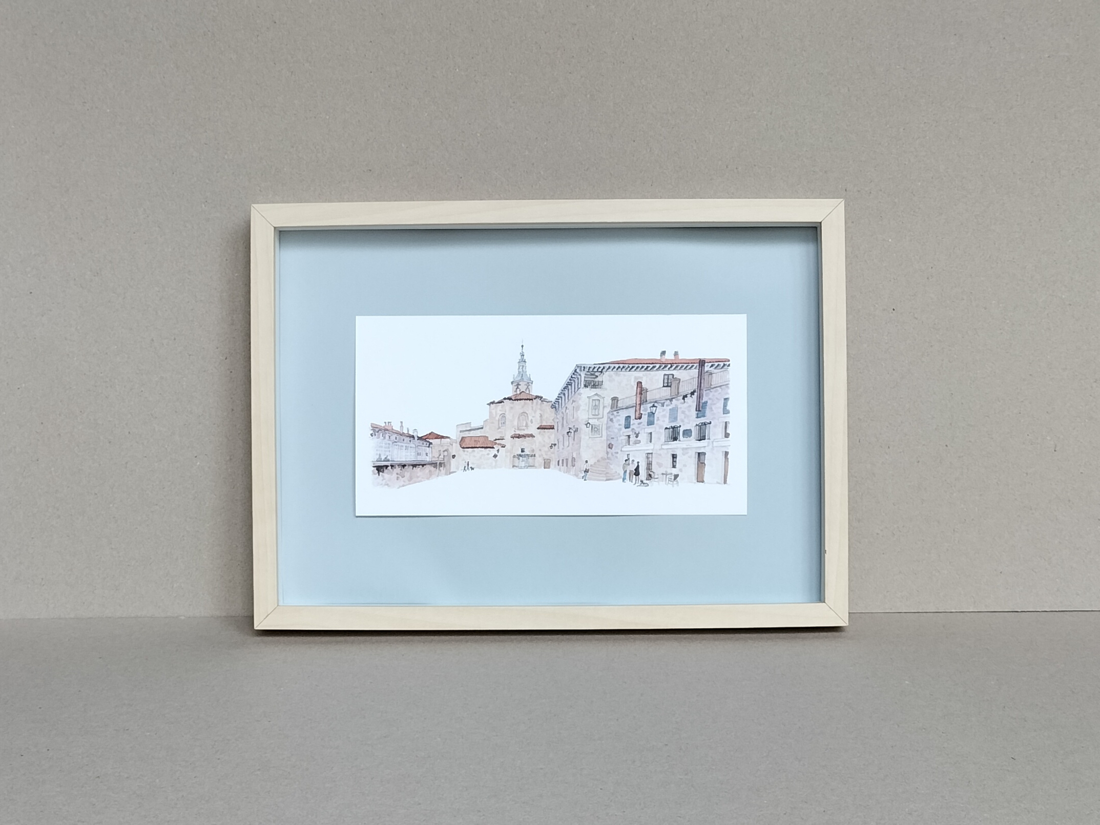 Lámina Plaza del Machete Aihotz plaza Vitoria Gasteiz elaborada a partir de una acuarela de Elena Ciordia.