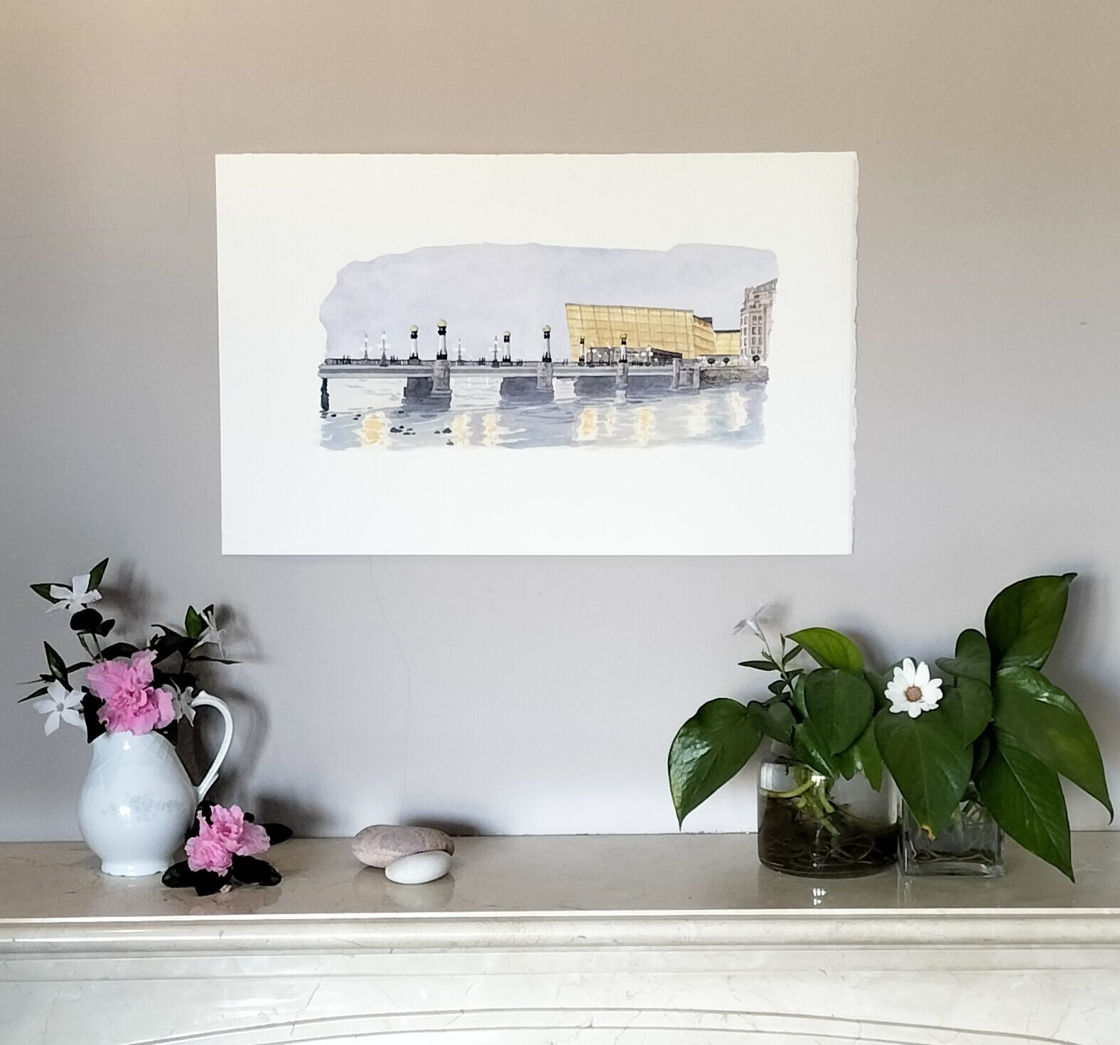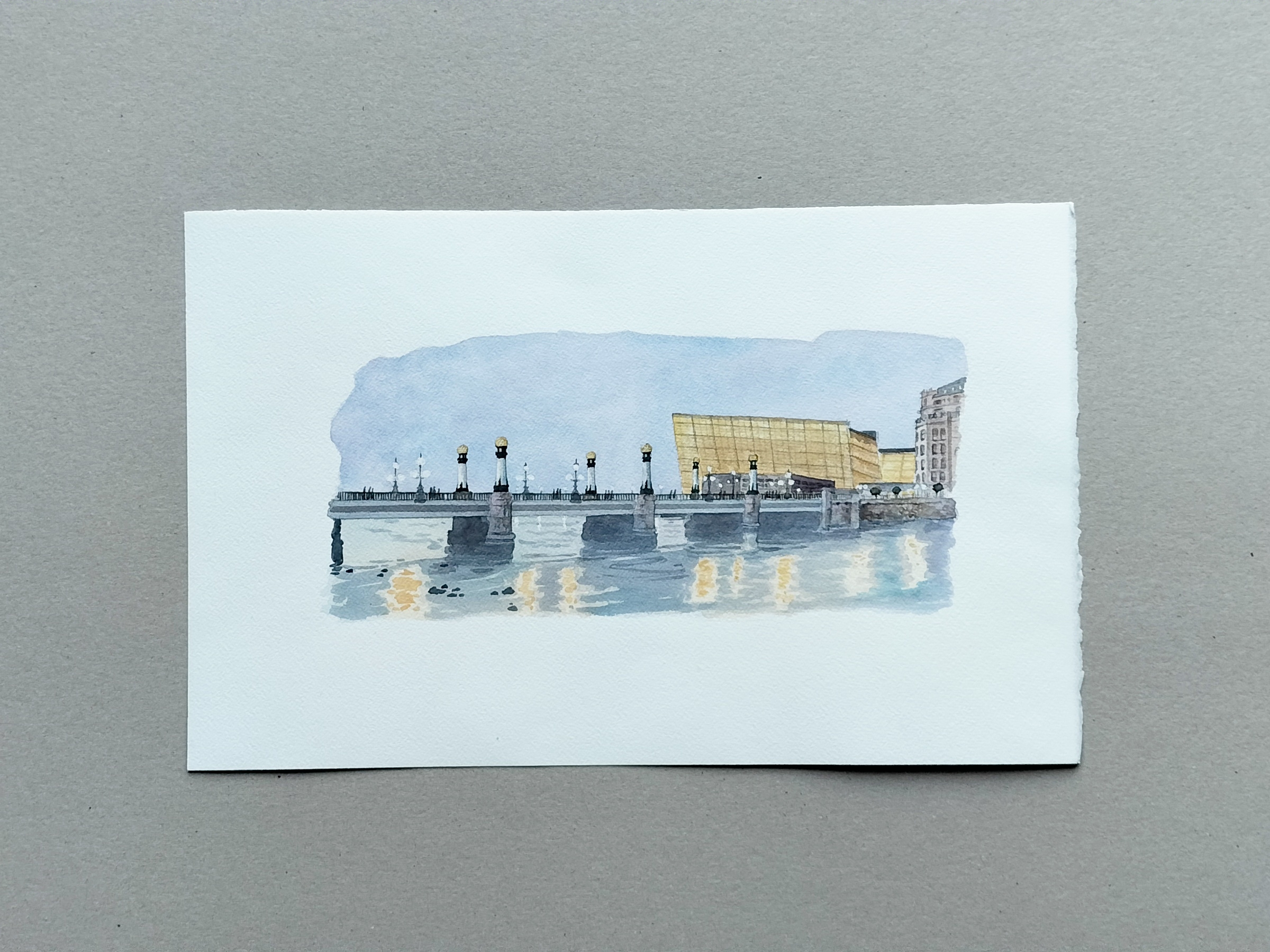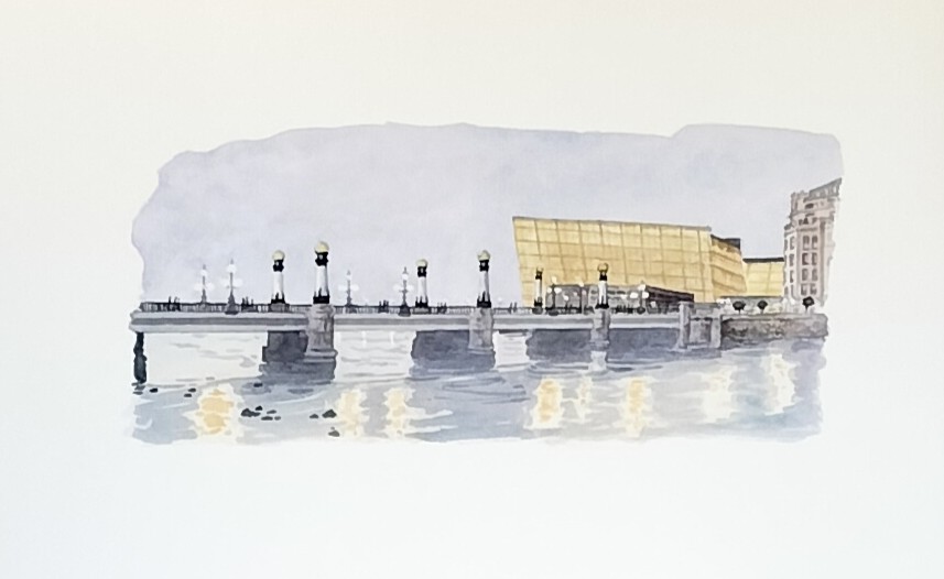 Acuarela Puente del Kursaal Zubia. Gauez. Acuarela sobre papel, original de Elena Ciordia.