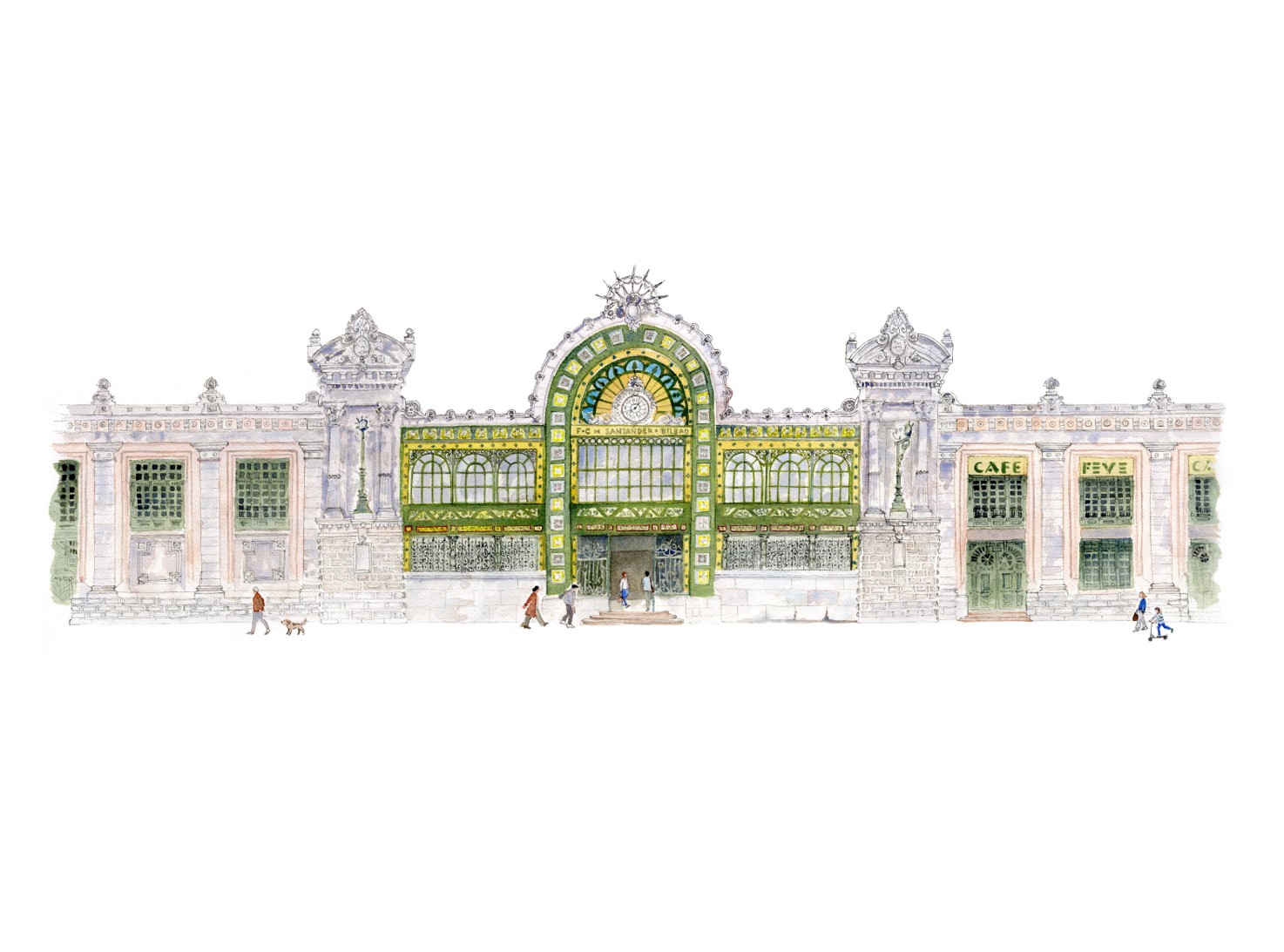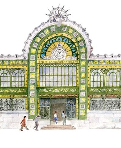 Acuarela Santander geltokia. La estación de Santander original de Elena Ciordia. Elena Ciordiak eginiko akuarela. Watercolor by Elena Ciordia.
