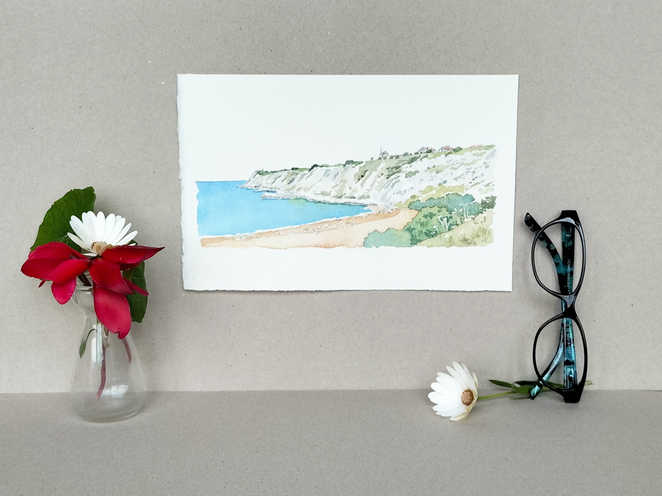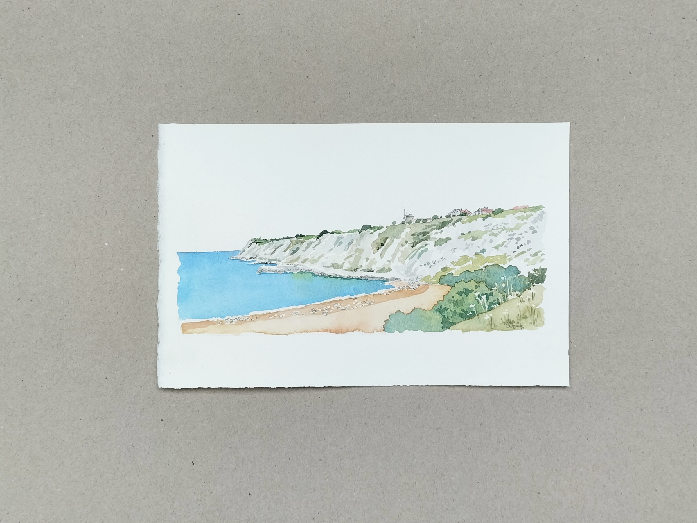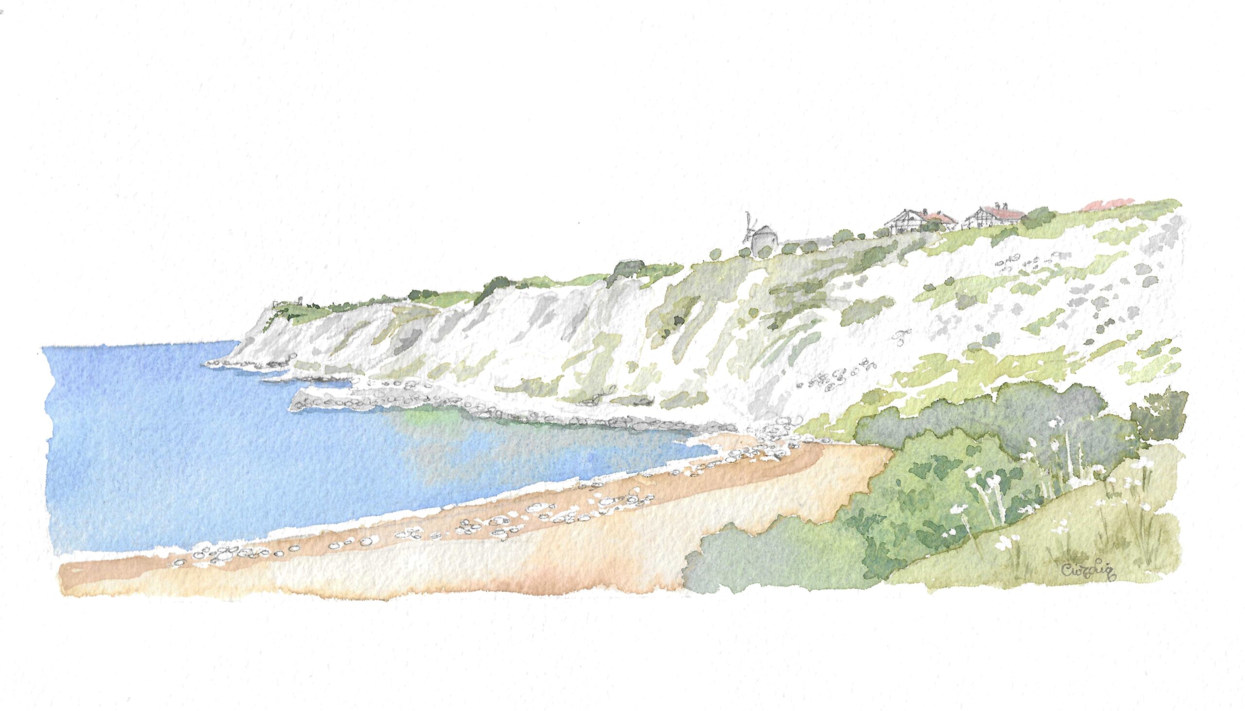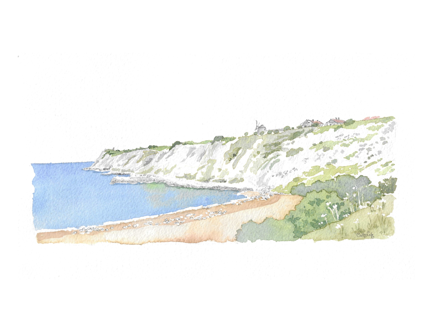 Acuarela Vista de Aixerrota original de Elena Ciordia. Elena Ciordiak eginiko akuarela. Watercolor by Elena Ciordia